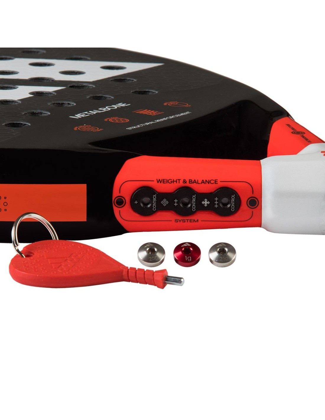 - Verfügt über eine Technologie zur Gewichtsanpassung des Schläger um bis zu 12 Gramm.