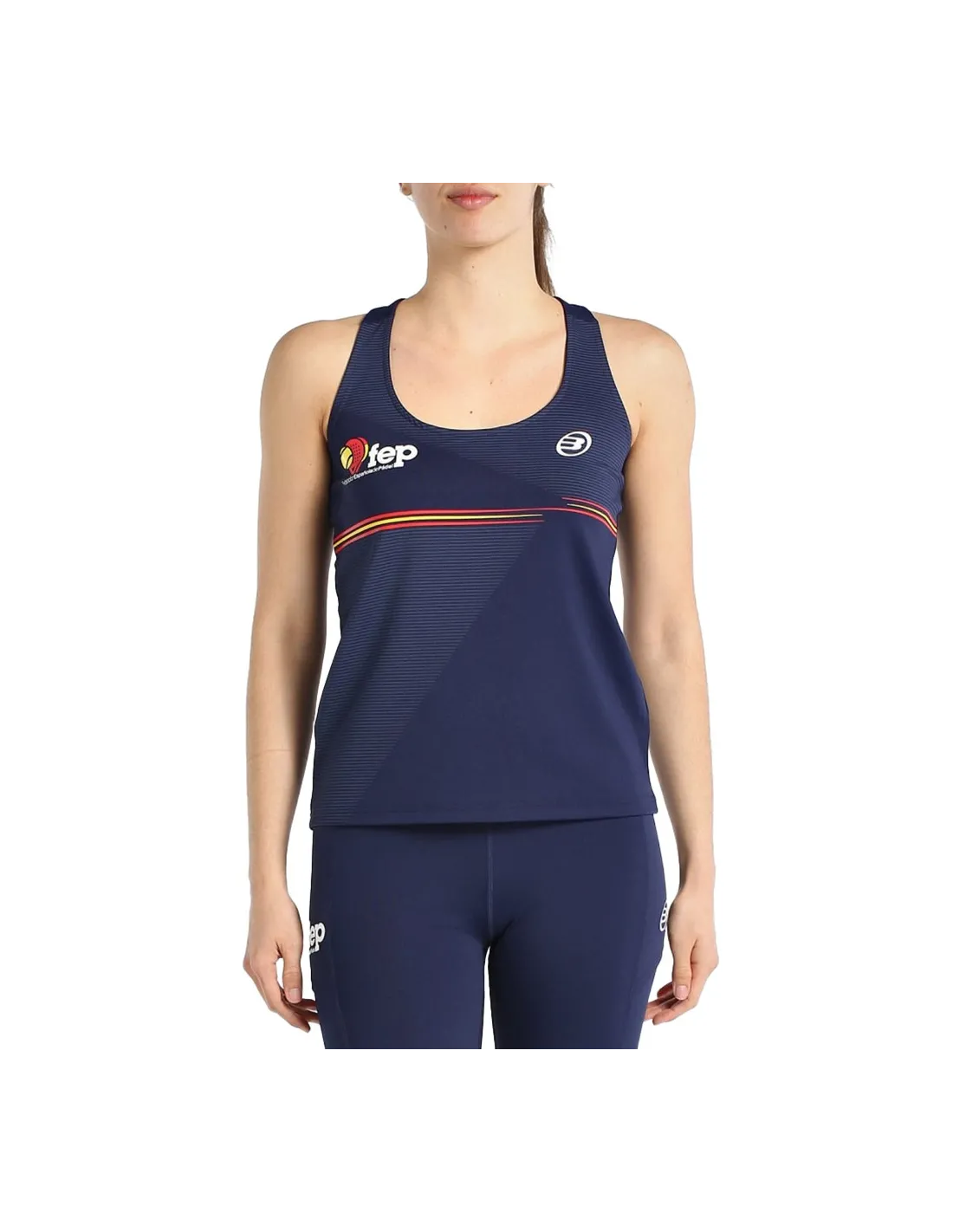 Lernen Sie ein sportliches und praktisches Kleidungsstück kennen, hergestellt aus elastischem Material. Ärmelloses T-Shirt der Spanischen Padel-Föderation.