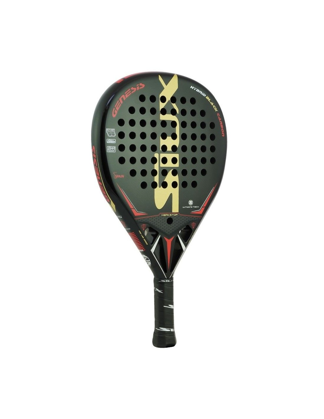 Diese Schläger ist für männliche Spieler mit fortgeschrittenem Spielniveau konzipiert. Ihr Design ist einfach, aber elegant, mit einem schwarzen Hintergrund und roten und goldenen Details, die die Marke Siux hervorheben und dich auf dem Platz großartig aussehen lassen.