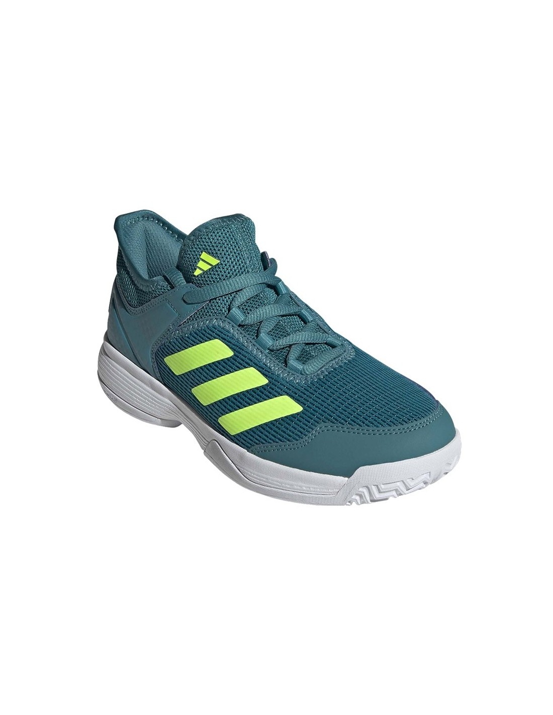 Diese Schuhe sind nicht nur funktional, sondern zeichnen sich auch durch ihre lebendige aquamarinblaue Farbe aus, die einen jugendlichen Stil verleiht. Die weiße Sohle fügt einen eleganten Kontrast hinzu und macht dieses Schuhwerk zu einer attraktiven Wahl für jeden jungen Padel-Spieler.