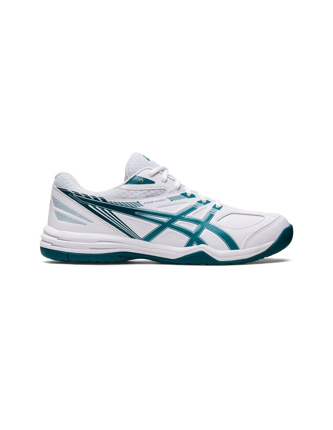 Die Schuhe Asics Court Slide in Weiß und Grün 21041A194 104 sind für Männer konzipiert, die Padel spielen und nach einem leichten und flexiblen Schuh suchen.