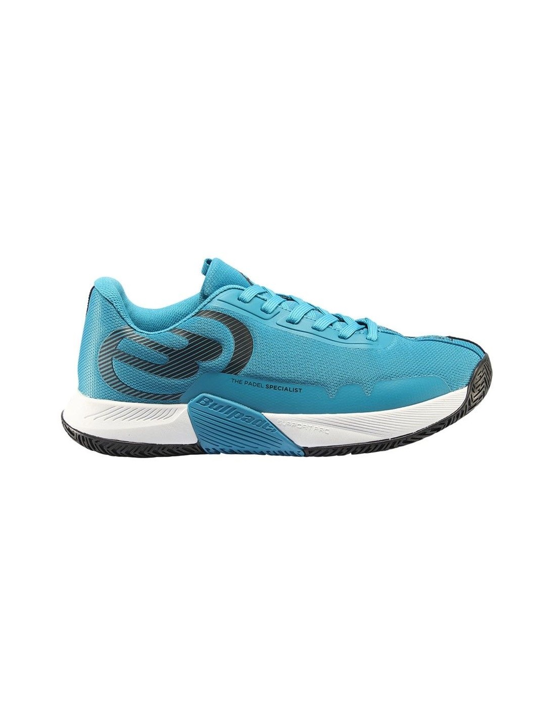 Entdecke die Bullpadel Next Pro 23V in einem lebhaften Hellblau. Diese Schuhe für Padel sind so konzipiert, dass sie dir dank ihres zentralen TPU-Stabilisators überlegene Stabilität bieten und jeden Schritt auf dem Platz fest und sicher machen.