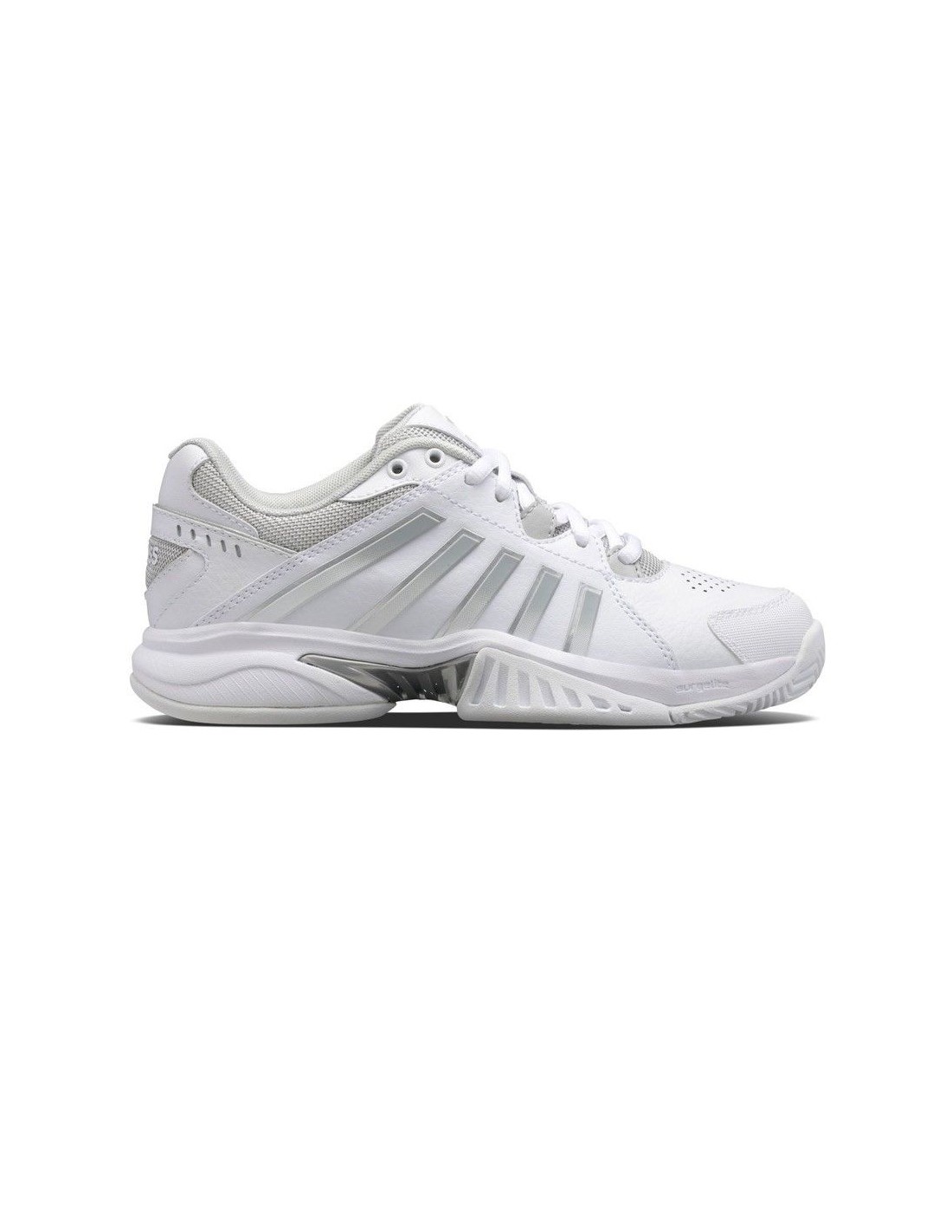 Die Schuhe für Padel K-swiss sind mit dem K-EVA-System ausgestattet, das eine überlegene Dämpfung in der Zwischensohle bietet, zusammen mit dem SurgeLite-Gummi, um maximale Haltbarkeit und Confort zu gewährleisten. Entwickelt, um Abnutzung zu widerstehen, sind die Schuhe Receiver V perfekt für mutige Spielerinnen, die Komfort und einen Leistungsschub suchen.