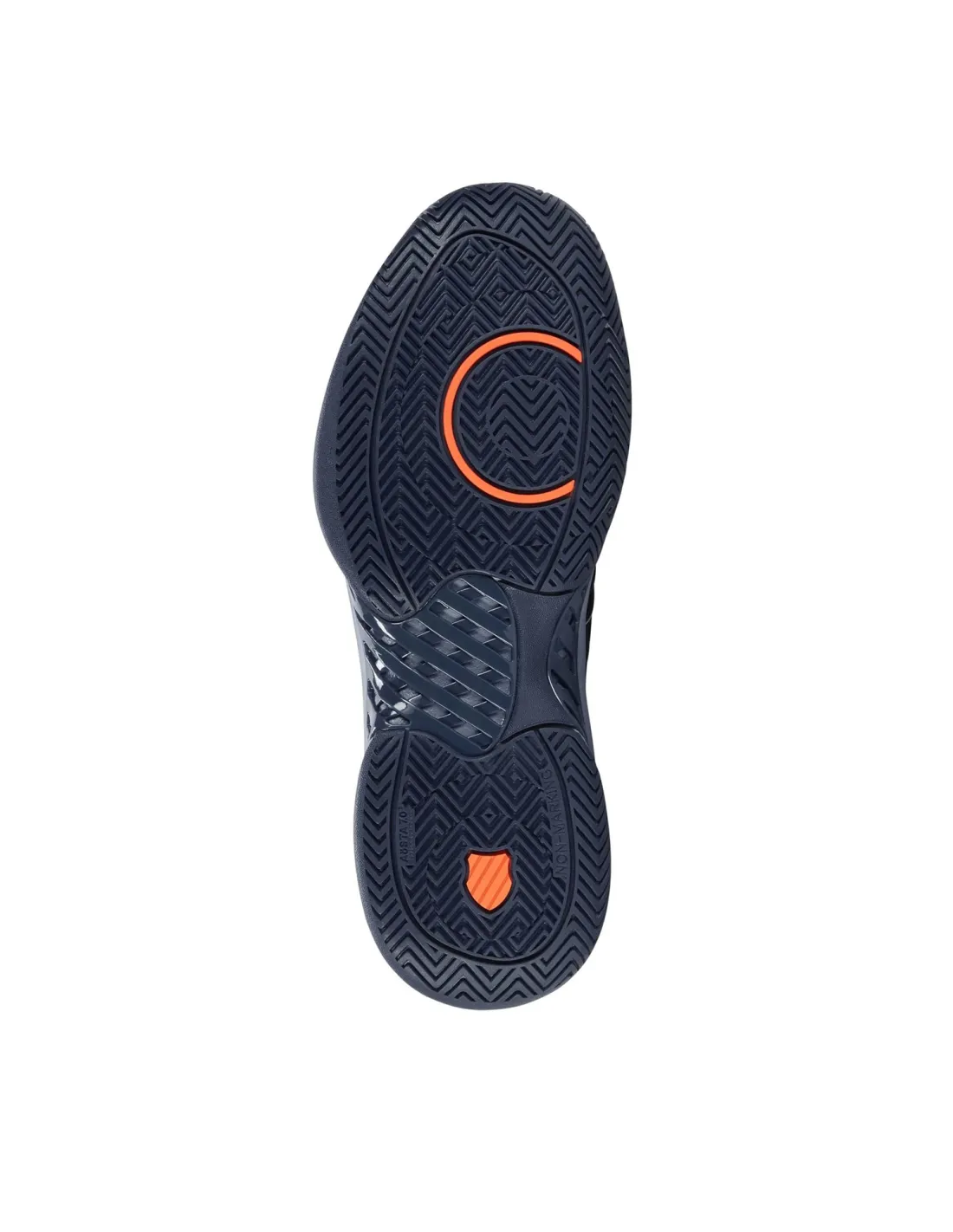 Die non-marking Sohle ist aus hochdichtem Aosta 7.0 Gummi gefertigt, was dank ihrer Verschleißfestigkeit eine außergewöhnliche Haltbarkeit garantiert, insbesondere in den am stärksten beanspruchten Bereichen. Darüber hinaus verbessert ihr tiefes Spike-Profil den Grip und die Traktion auf dem Platz.