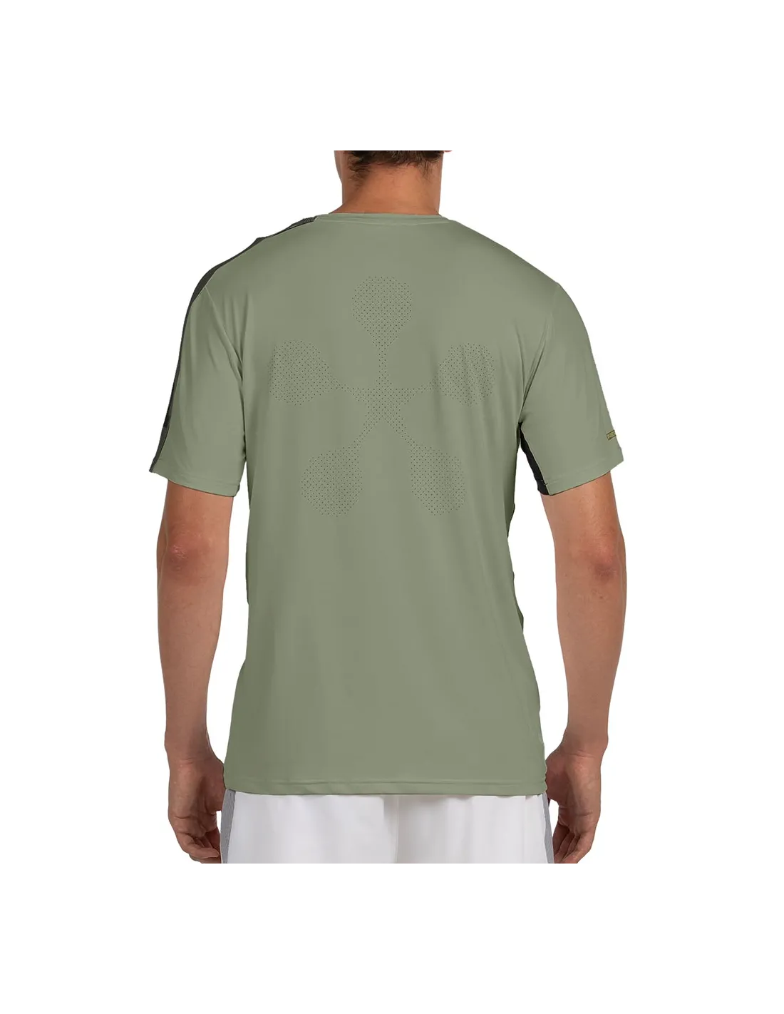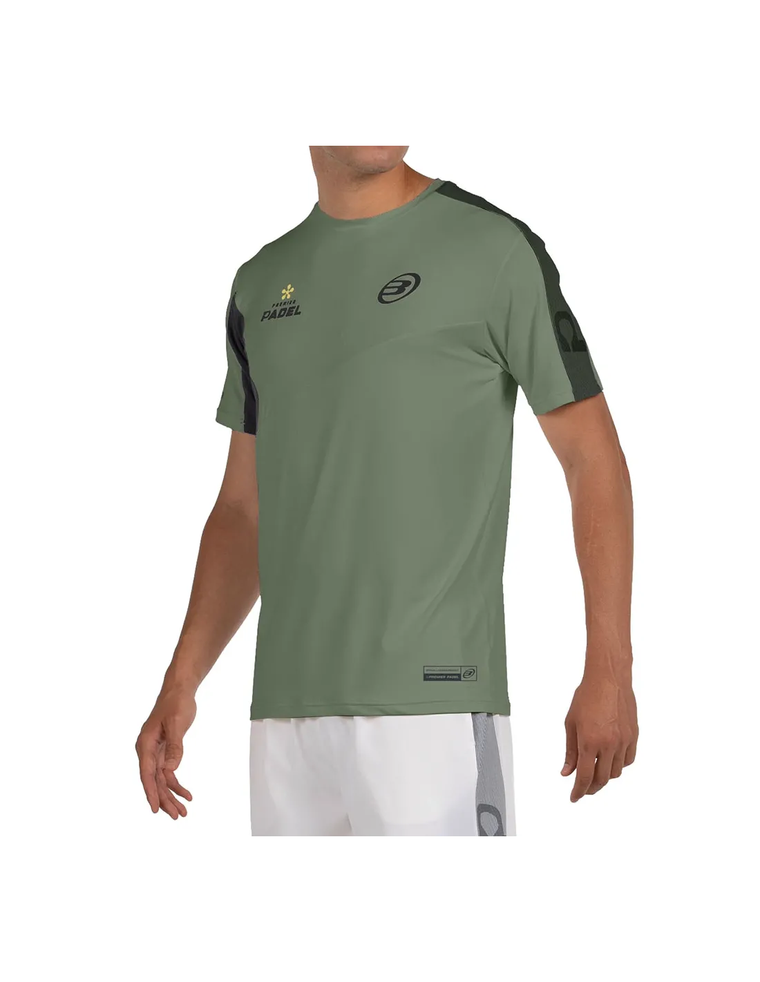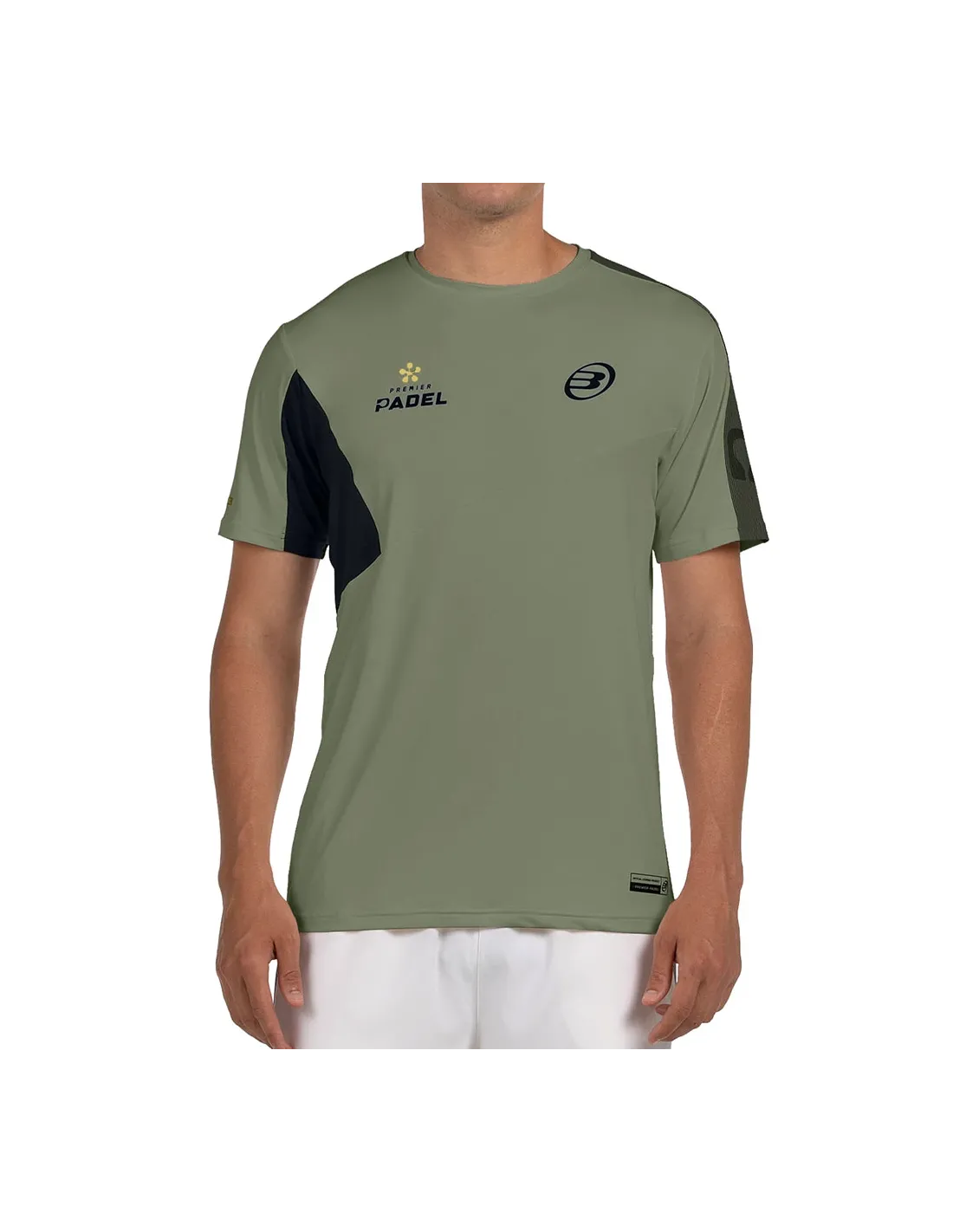 Sein modernes und dynamisches Design zeichnet sich durch eine asymmetrische Struktur aus, mit einzigartigen Details unter dem rechten Ärmel und einem grafischen Band, das die linke Schulter und den linken Ärmel umschließt. Auf der Rückseite verfügt es über eine personalisierte Laserperforation, die die Belüftung in den intensivsten Momenten verbessert. Außerdem zeigt es die offiziellen Grafiken von Premier Padel und verleiht einen professionellen und exklusiven Touch.