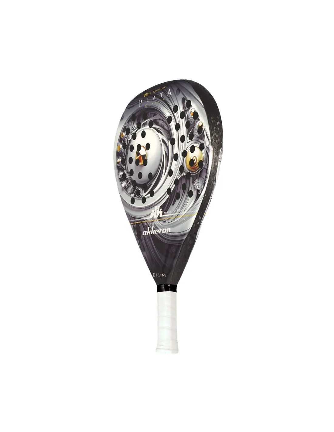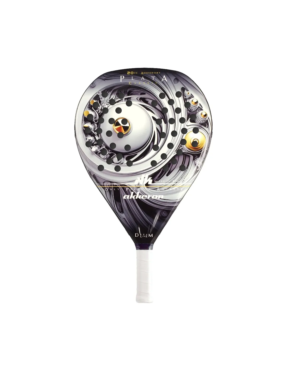 Das Plata 20th Anniversary von Akkeron ist ein Schläger für Padel, das Teil der Dream Line Kollektion ist. Mit seiner Tropfenform und dem mittleren Balancepunkt ist dieses Schläger ideal für ein vielseitig / vielseitig einsetzbar Spiel, das es dir ermöglicht, präzise aus der Defensive zu spielen und mit Power am Netz anzugreifen. Sein leichtes Gewicht, zwischen 350 und 375 Gramm, sorgt für eine hervorragende Handhabung und reduziert das Verletzungsrisiko, sodass du dich darauf konzentrieren kannst, jeden Punkt ohne Sorgen zu gewinnen. Darüber hinaus lässt dich sein auffälliges Design auf dem Platz hervorstechen.