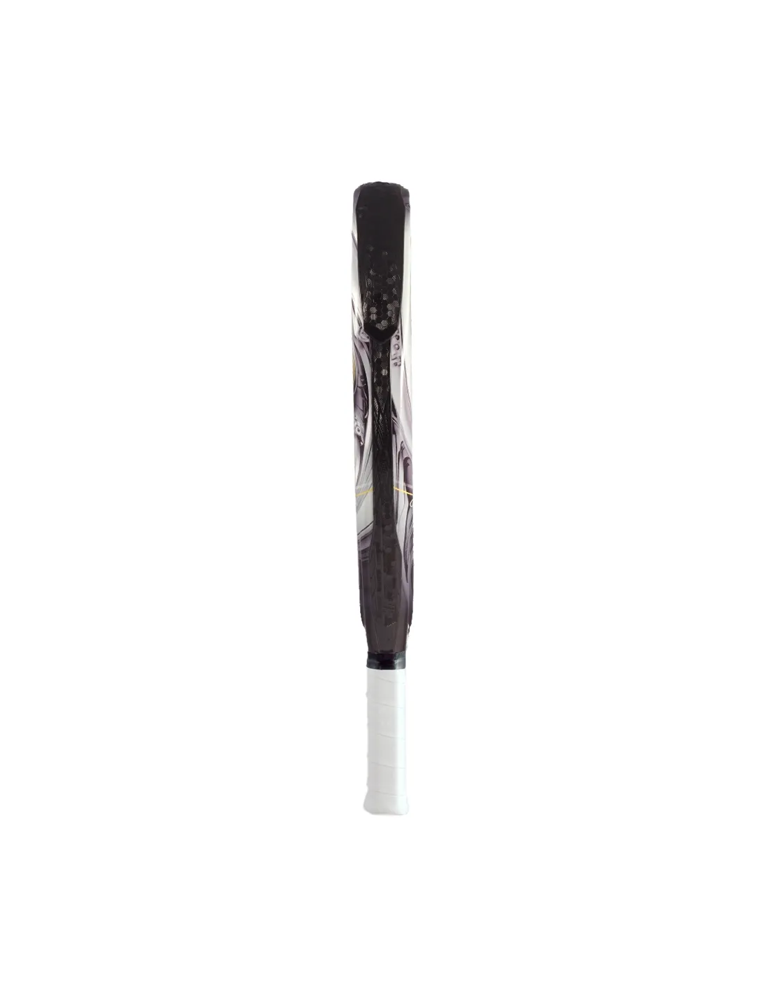 - 3K-Carbonflächen mit glänzendem Finish und Carbon-Rahmen mit strukturellen Verstärkungen verteilen das Gewicht und stärken den Schläger gegen Stöße.