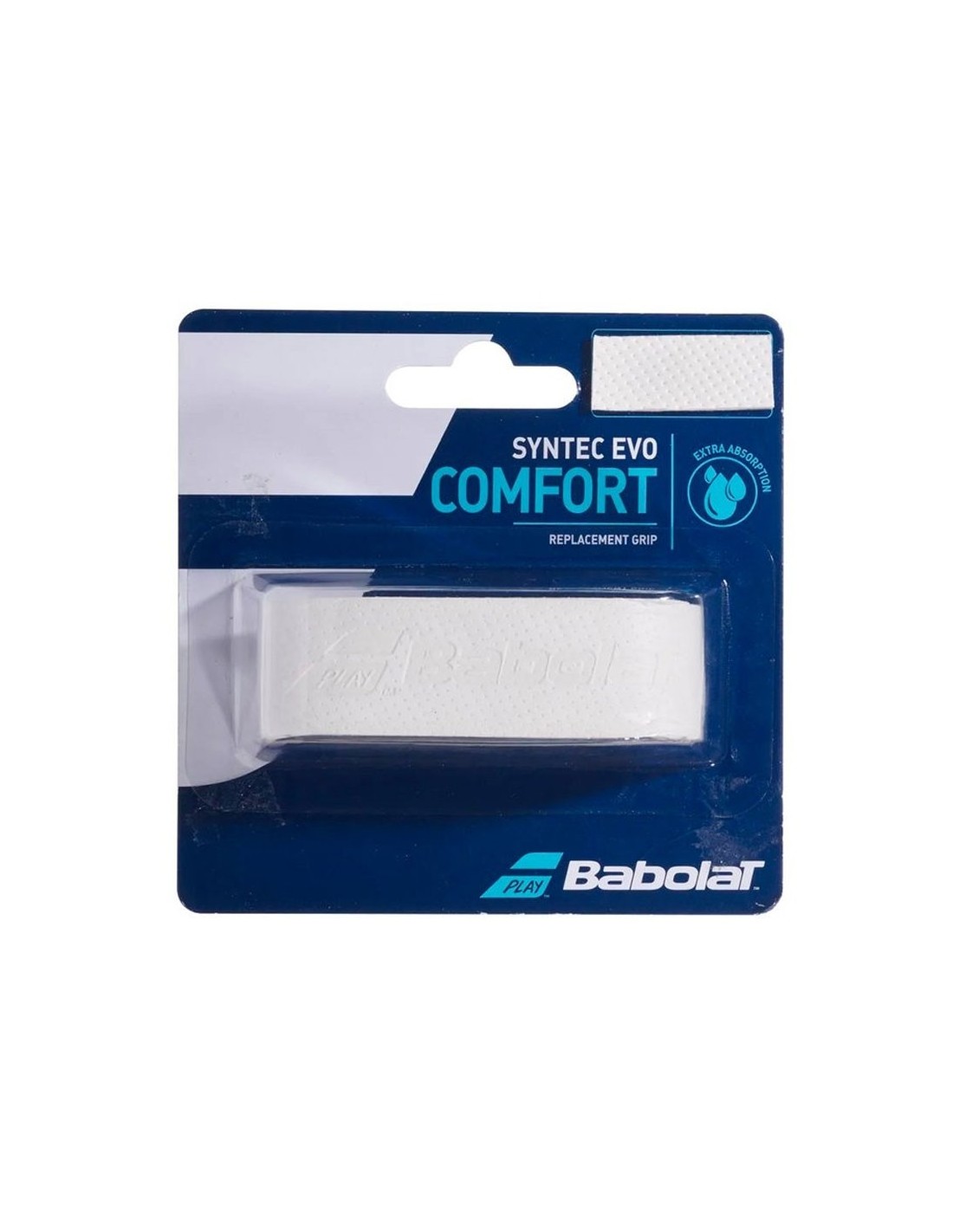 Grip Babolat Syntec Evo X1 Weiß - Entworfen mit einer mikroperforierten Struktur, die eine überlegene Absorption gewährleistet. Außerdem ist die Installation dank der erhabenen Schnittlinien einfach.