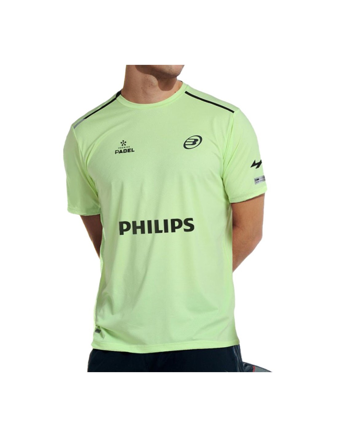 Das T-Shirt Bullpadel Acilo, die Martín Di Nenno im Premier Pádel trägt, ist eine offizielle Wahl. Sie ist aus einem Stoff gefertigt, der Elastan und Polyester kombiniert und dank der Drynamic-Technologie Leichtigkeit, Elastizität und Atmungsaktivität bietet.