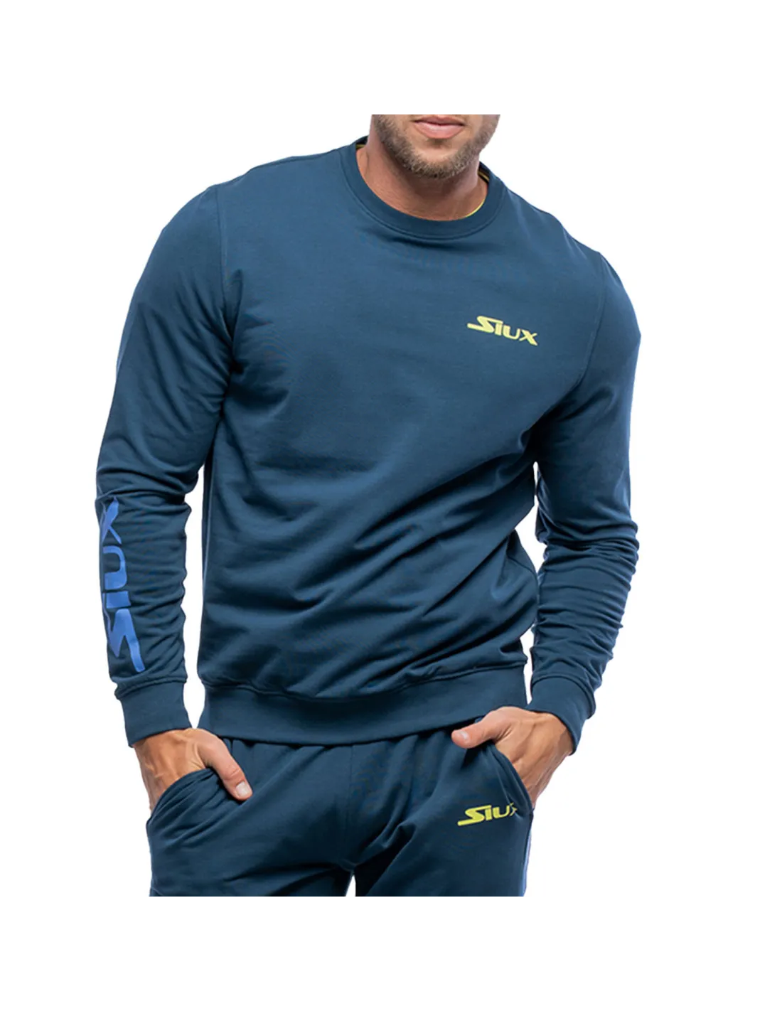 Es ist ein grundlegendes und sportliches Stück, das das Logo von Siux in Blau auf dem Ärmel und in Gelb auf der Brust zeigt. Es ist in verschiedenen Größen erhältlich, damit du diejenige findest, die am besten zu dir passt.