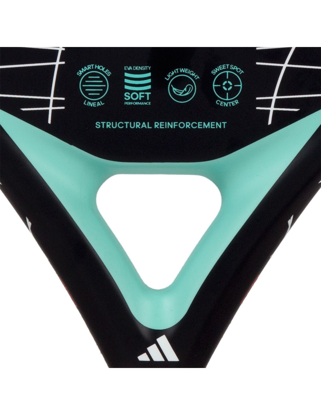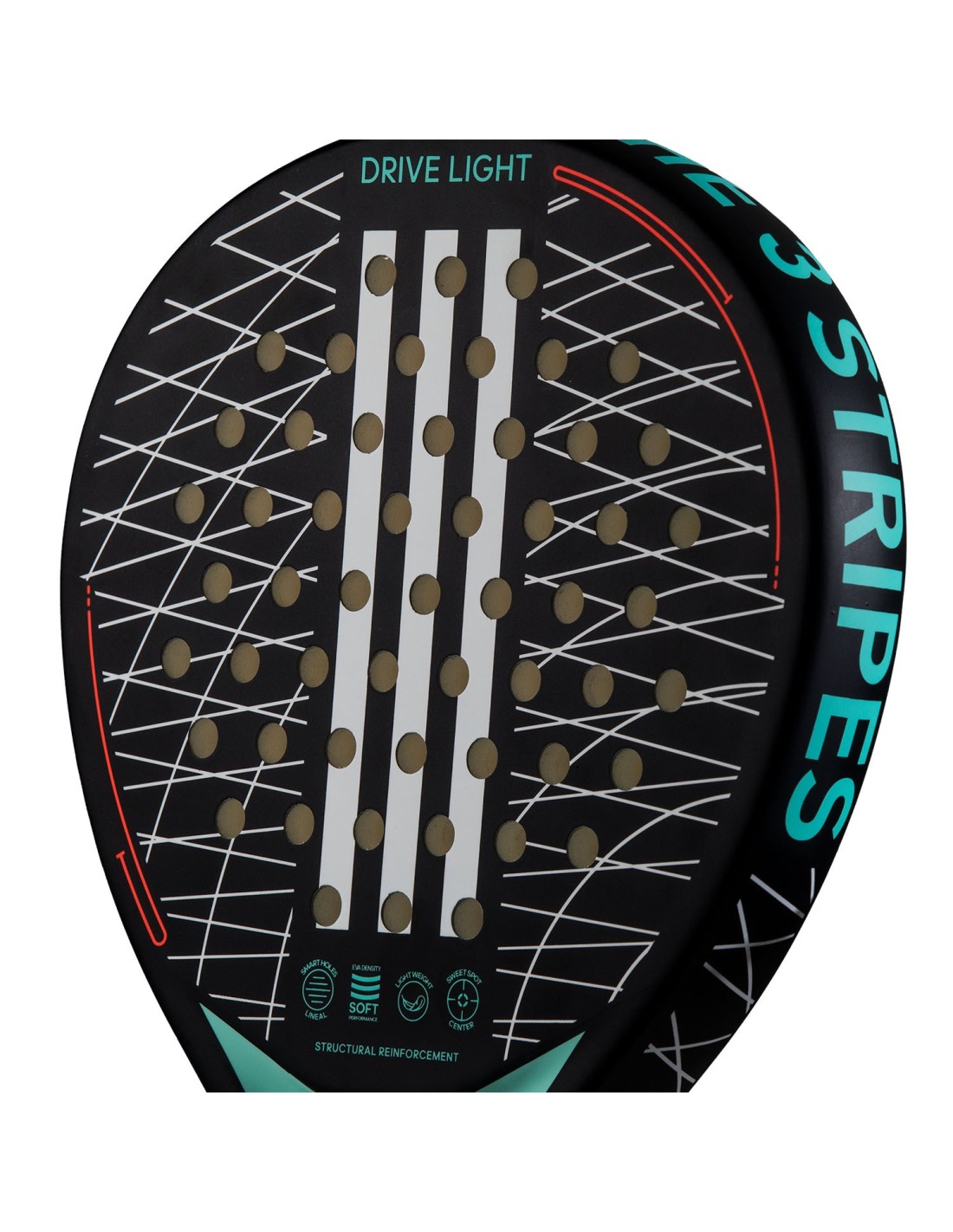 Für eine längere Haltbarkeit verfügt die Schläger über die Smart Holes Lineal-Technologie, die die Bereiche mit der größten Torsion durch eine gleichmäßige Anordnung von Löchern in Dreiergruppen verstärkt.