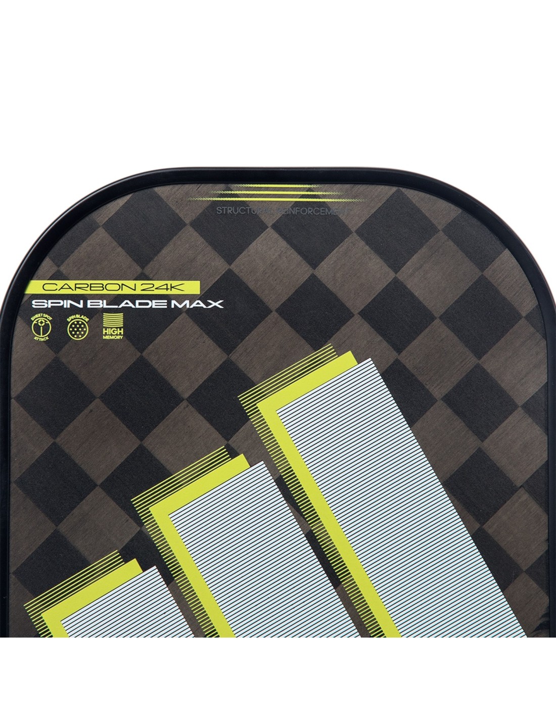 Gefertigt aus hochwertigen Materialien, wie dem 24 Carbon Aluminized in ihrer Faser, garantiert dieses Racket außergewöhnliche Haltbarkeit. Ihr Rahmen integriert die Structural Reinforcement-Technologie, die die Struktur verstärkt und die Stabilität bei den kraftvollsten Schlägen verbessert. Die Dicke von 14 mm sorgt für ein solides Schlaggefühl, während die Rauheit Spin Blade Max überraschende Effekte auf den Ball ermöglicht und in jedem Spielzug einen Wettbewerbsvorteil bietet.