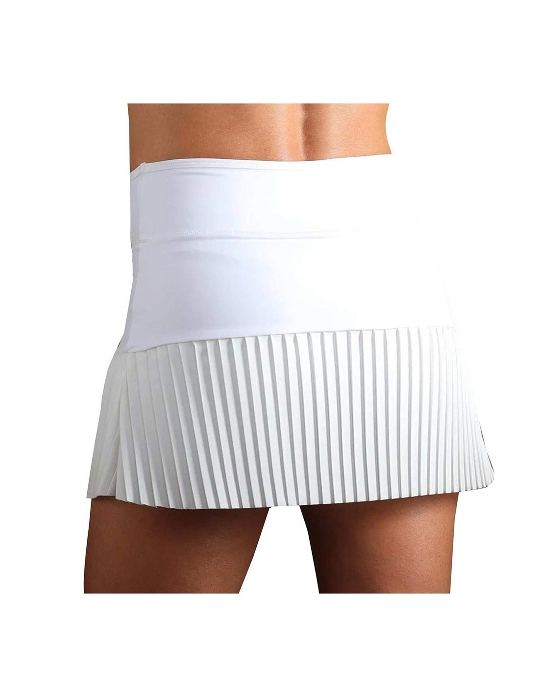 Der Rock Bullpadel Druso für Damen, Teil der Timeless-Kollektion, ist darauf ausgelegt, Ihnen Beweglichkeit und Schnelligkeit auf dem Platz zu bieten. Sie ist aus einem doppelseitigen Interlock-Gewebe gefertigt, das zu 100 % aus hochwertigem recyceltem Repreve-Polyester besteht.