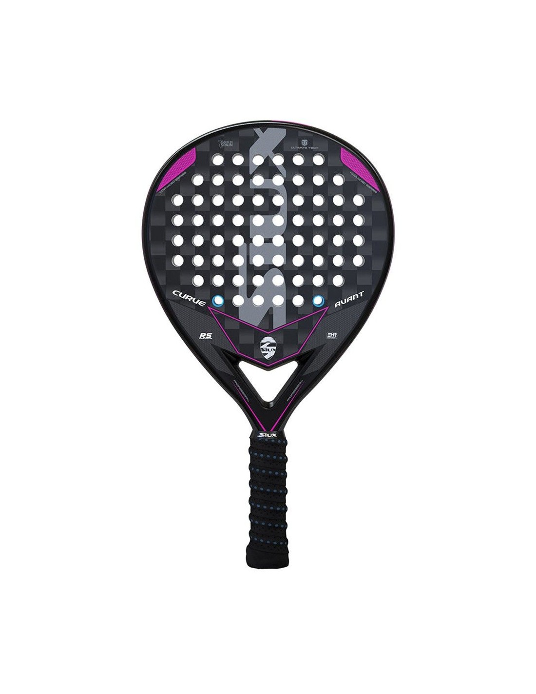 Mit einem glatten, matten Finish zeigt dieses Schläger Siux Details und Buchstaben in einem lebhaften Fuchsia, was ihrem Design einen modernen und femininen Touch verleiht.