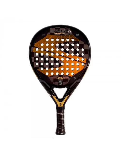 Die Softee Speed Gold Power 3.0 2024 ist ein tropfenförmiger Padel-Schläger, den du nicht verpassen möchtest. Teil der Kollektion 2024, ist dieser Schläger perfekt für diejenigen, die ein Gleichgewicht zwischen Kontrolle und Power suchen. Sein mittleres Gleichgewicht macht ihn zugänglich und einfach zu handhaben, was einen effizienten Schlag bei jedem Spielzug gewährleistet. Hergestellt aus Materialien, die die Power maximieren, ohne den Kontrolle zu opfern, hat er ein Profil von 38 mm und ein Gewicht, das zwischen 355 und 375 Gramm variiert.