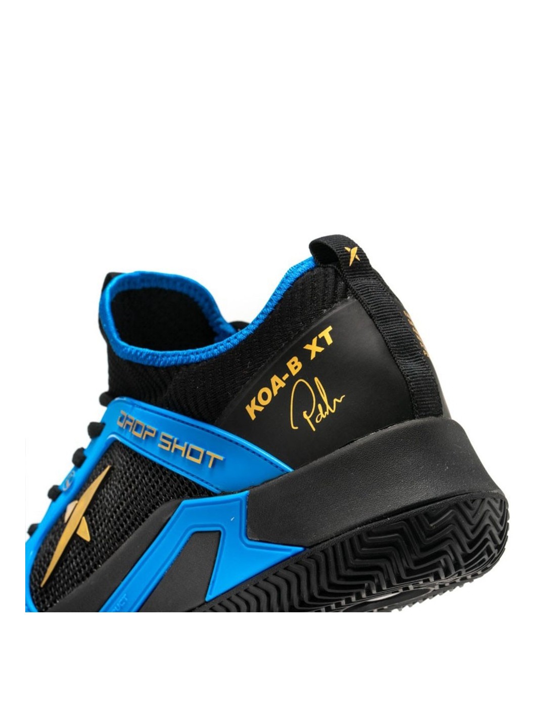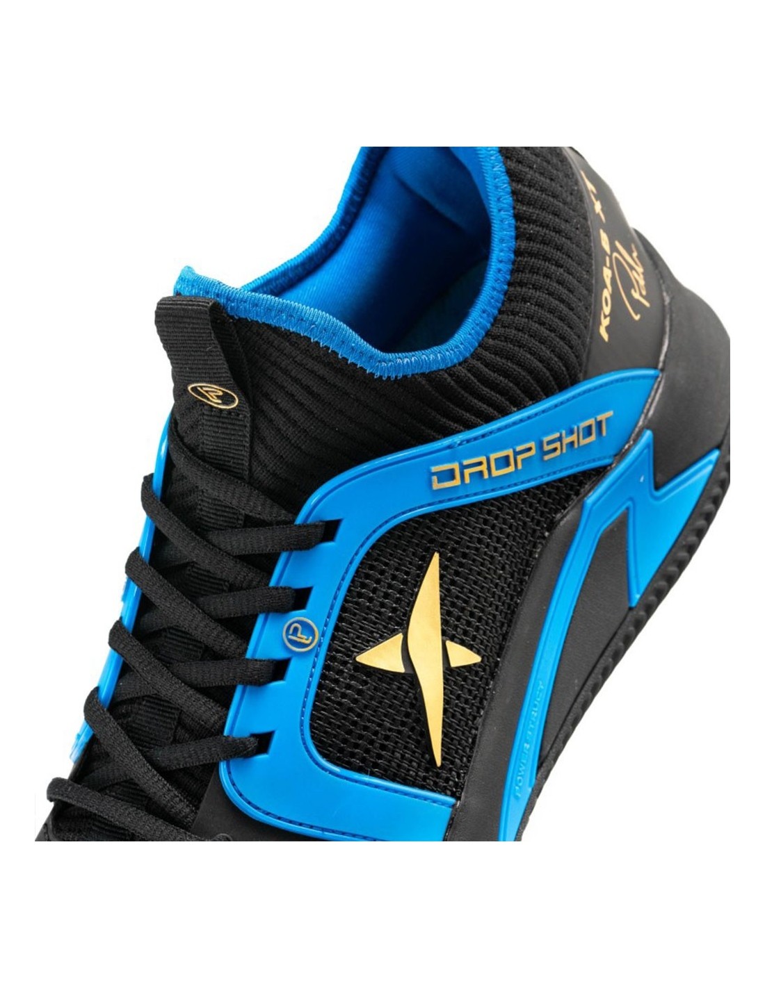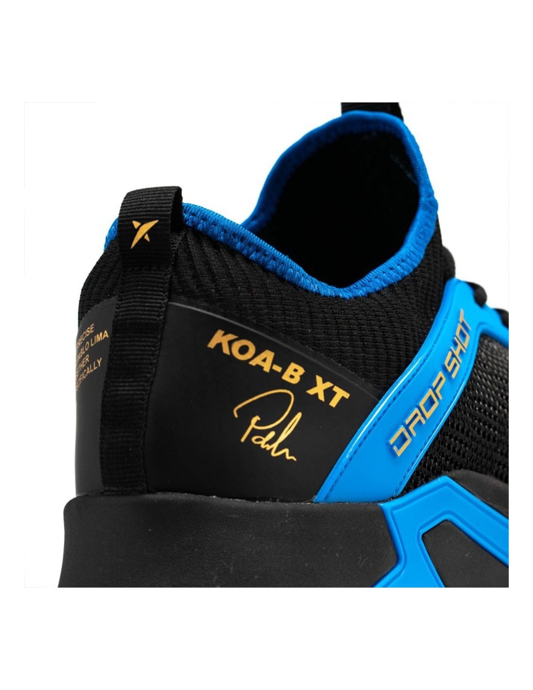 Dieses Modell besticht auch durch seine moderne Ästhetik, die schwarze, blaue und goldene Details für einen anspruchsvollen Look kombiniert. Die Drop Shot Koa-b XT Lima integrieren fortschrittliche Technologien wie das thermoplastische KPU, das die Abriebfestigkeit verbessert, schlechte Gerüche verhindert und die Farbe lebendig hält.