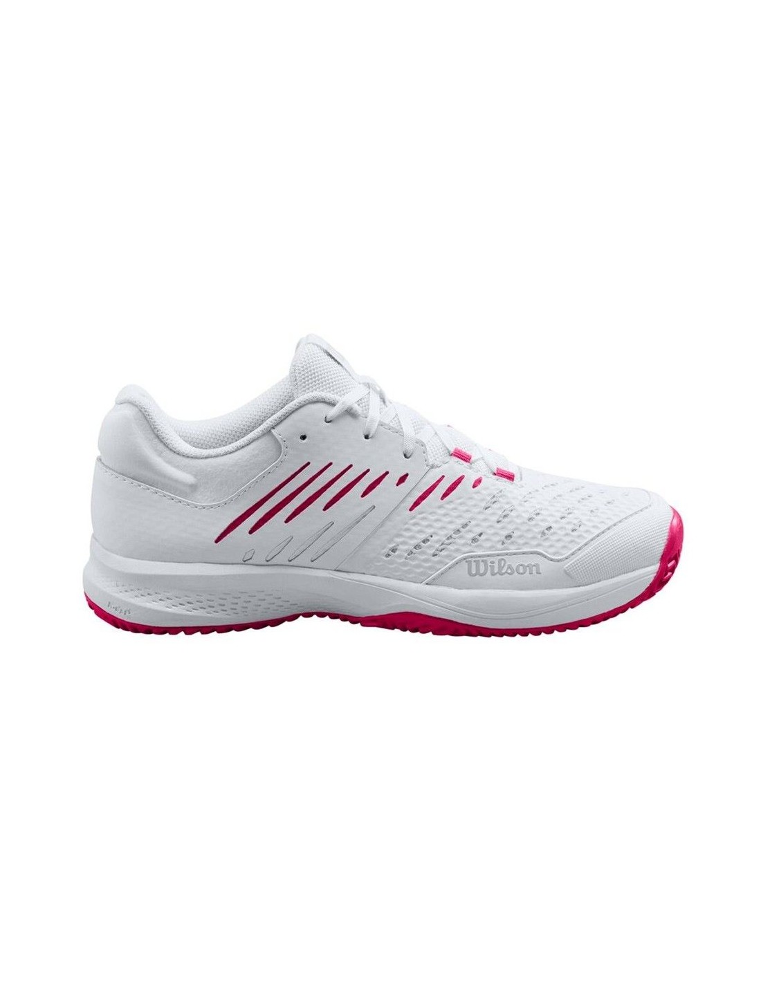 Die Schuhe Wilson Kaos Comp 3, in elegantem Weiß mit rosa Akzenten, sind perfekt für Spielerinnen, die einen sicheren Sitz und außergewöhnliche Stabilität auf dem Platz suchen.