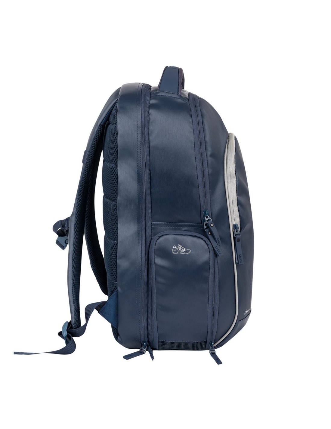 It includes a padded main compartment to carry your equipment or laptop safely. It also incorporates a ventilated side pocket, ideal for your shoes, keeping them clean and preventing unpleasant odors. Additional front and side pockets provide extra space for small accessories, ensuring everything is organized and accessible.