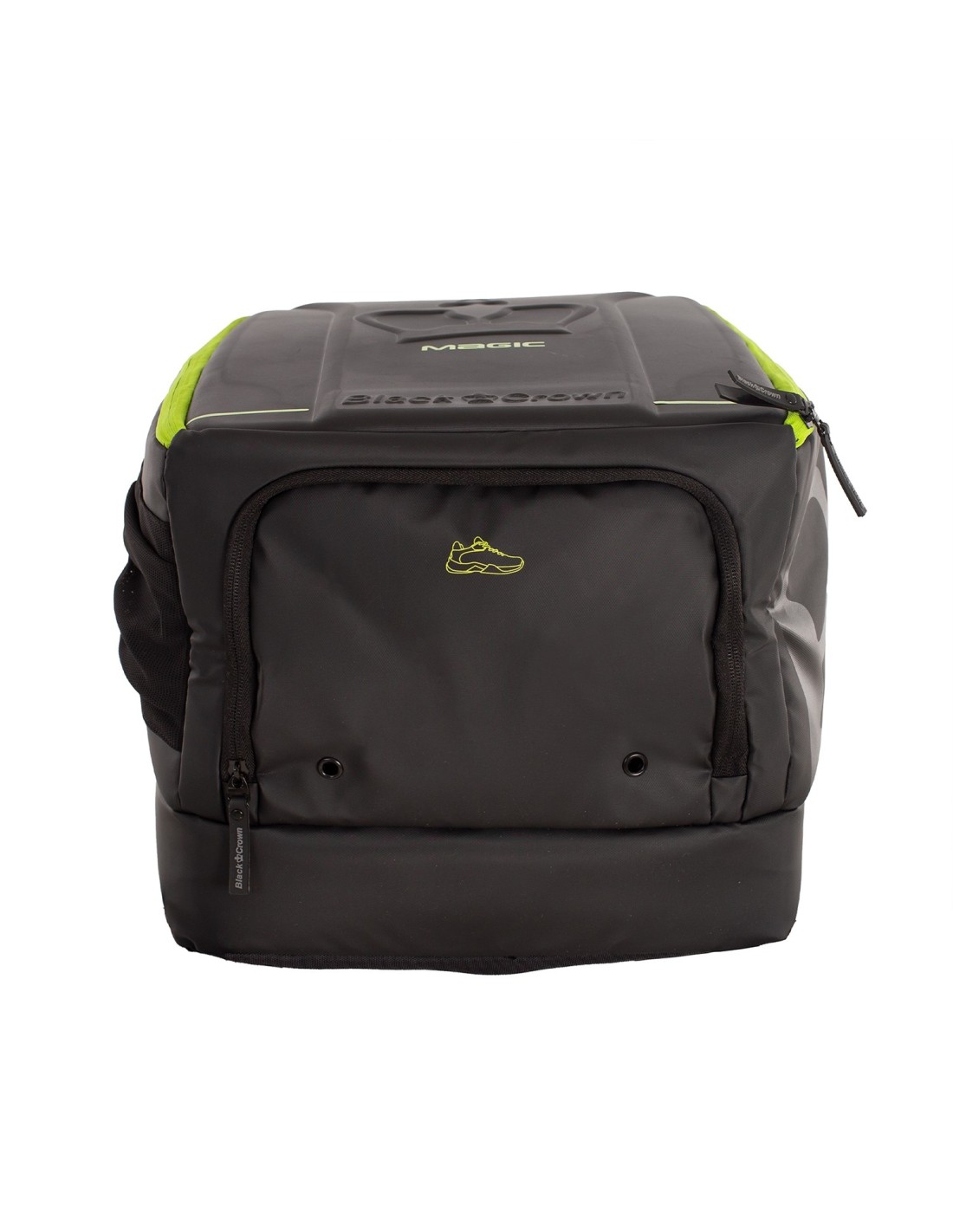 The Black Crown Magic backpack in black and yellow is the perfect choice for players seeking comfort and organization. Its clever design offers specific compartments, including one exclusively for two paddle rackets, ensuring their protection. The main compartment is spacious, ideal for your clothes and accessories. Additionally, it has a separate pocket at the bottom for shoes, keeping everything clean and tidy. Made of 30% EVA, 70% PVC, and internal polyester lining, it stands out for its strength and durability.