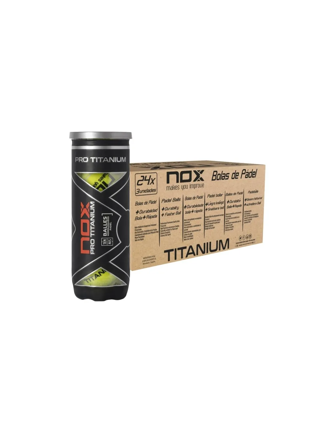 The pack of 24 tubes with 3 balls of Nox Pro Titanium padel balls