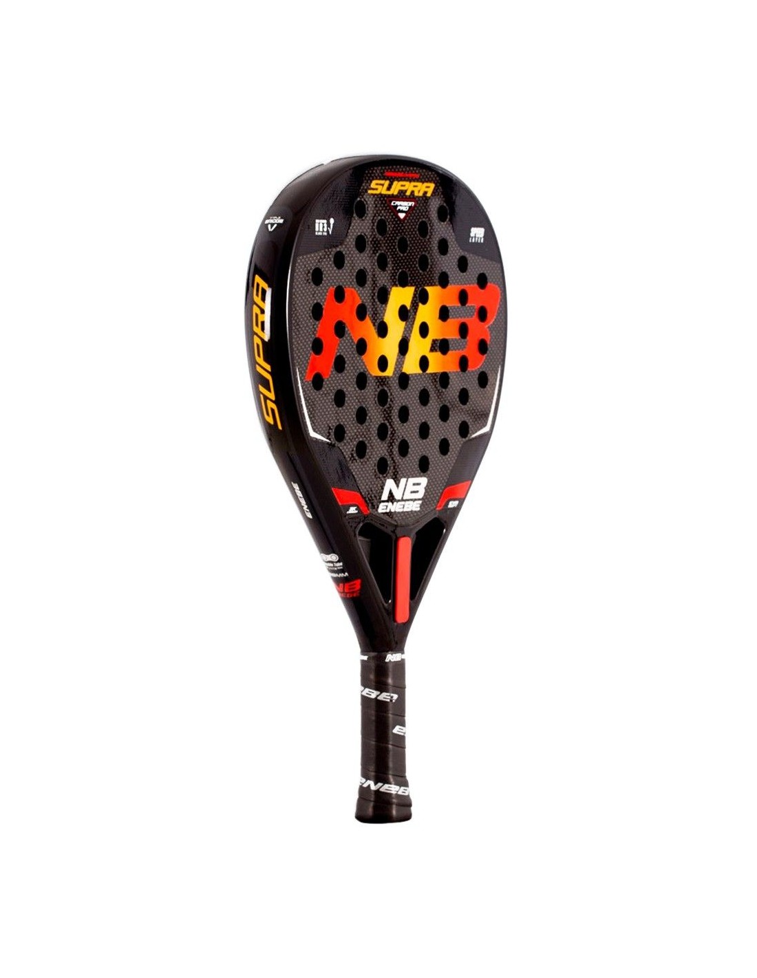 - Teardrop shape: The Racket Enebe Supra Carbon offers an extra of power due to its teardrop shape and medium-high balance.