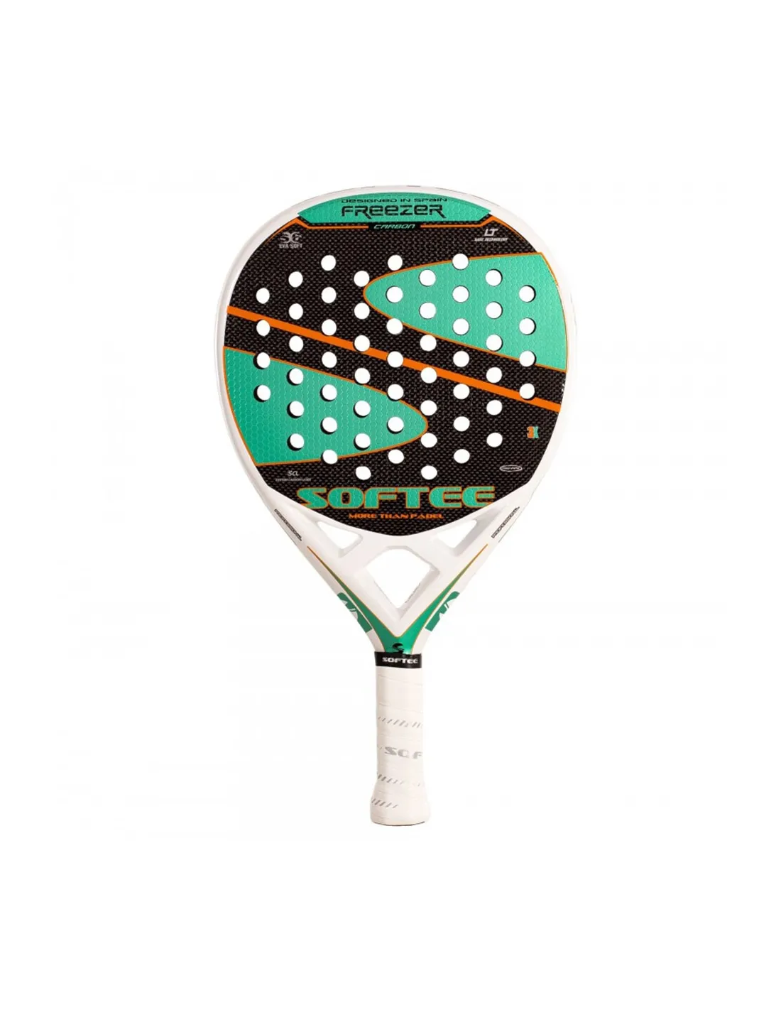 Get ready to discover the new gem from Softee Padel: the Freezer Carbon 3K Green. This model comes with a fresh and renewed design, where the iconic logo is presented with a visible carbon finish, giving it a technical and sophisticated touch. The green lines adorning the edge of the Racket give it a modern and energetic look, while its glossy and smooth finish enhances its aesthetics and improves the feel to the touch. It is a Racket that combines elegance and performance in a single concept.