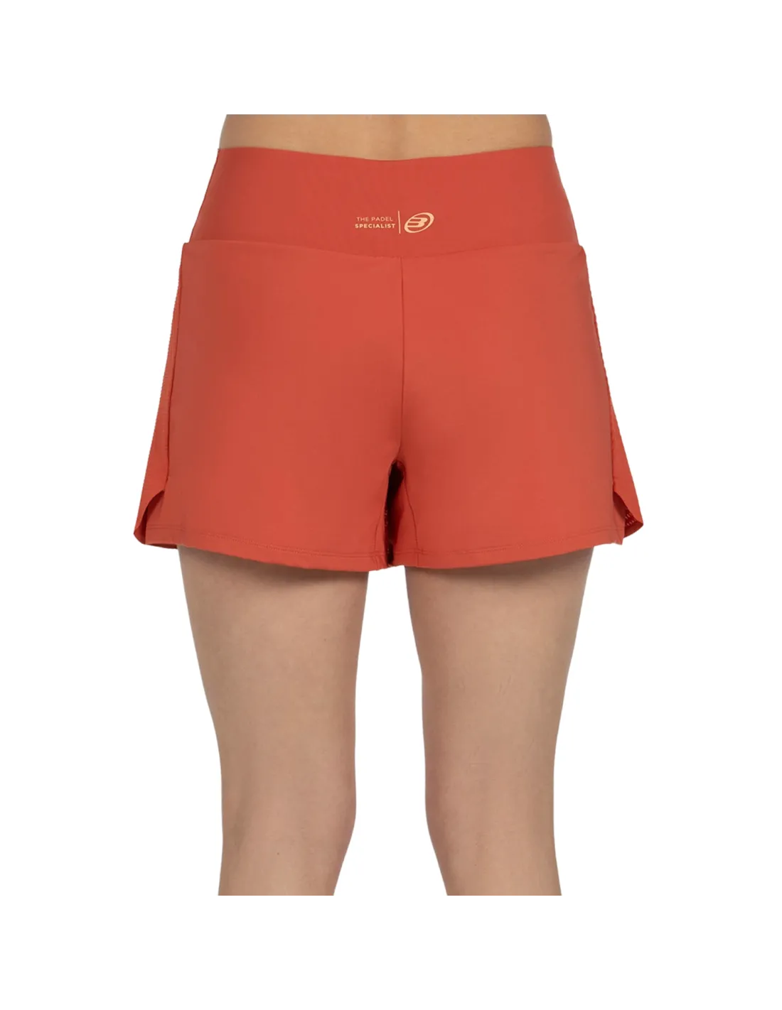 Su cinturilla alta no solo estiliza la figura, sino que también asegura un ajuste firme incluso durante los movimientos más exigentes. La sobrefalda, hecha de un tejido ligero y texturizado, presenta costuras decorativas en contraste que le dan un toque único.