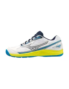 Mizuno Break Shot 4 Ac en Blanco y Amarillo - Las zapatillas ideales para dar tus primeros pasos en el mundo del pádel. Perfectas para jugadores que están comenzando. Cuentan con Suela mixta y un rotador integrado.