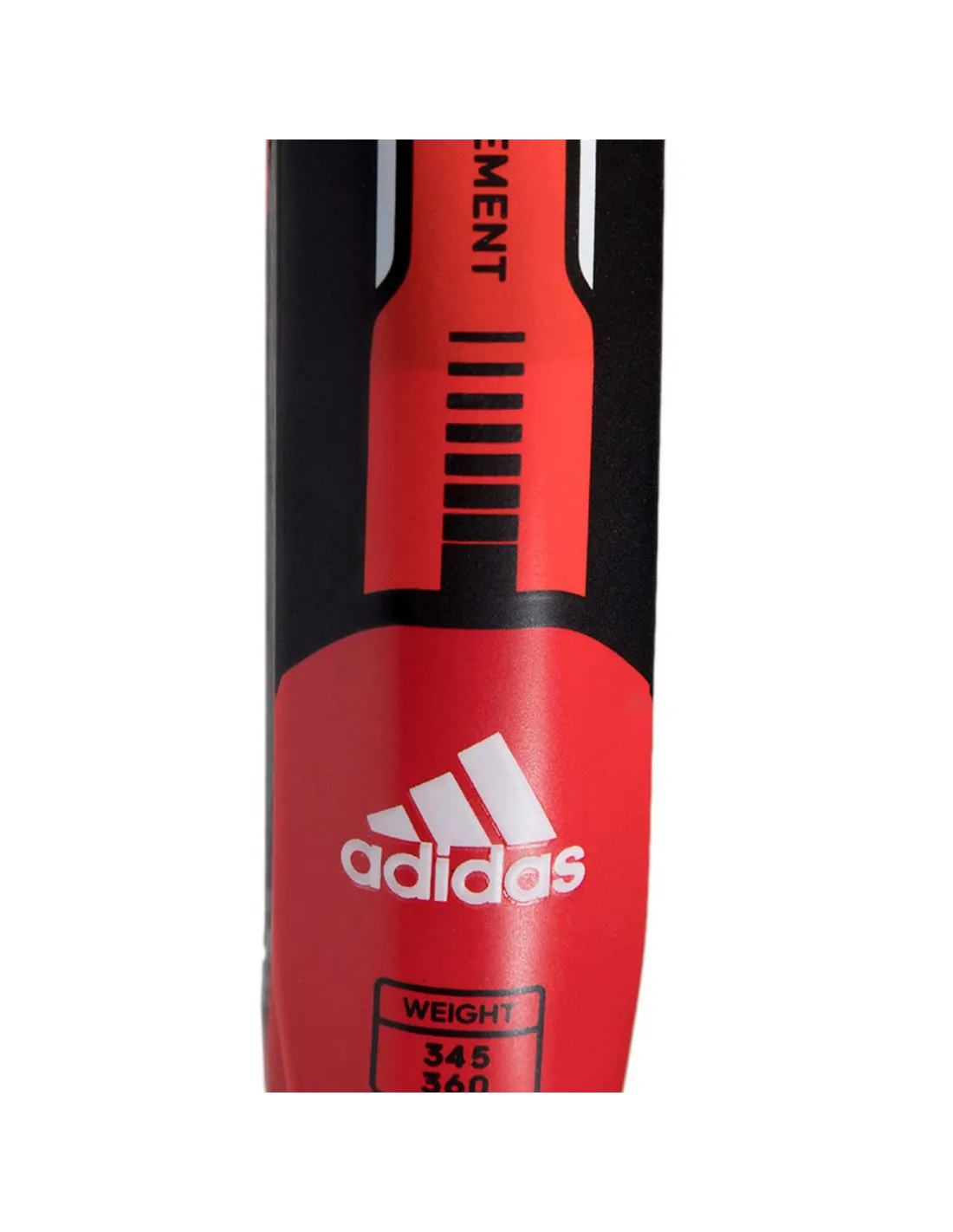 Presenta un diseño vibrante que transmite energía y dinamismo. El Grip es negro, con detalles en rojo y gris en el puente. El plano es mayormente gris, destacando el logo de Adidas en rojo.