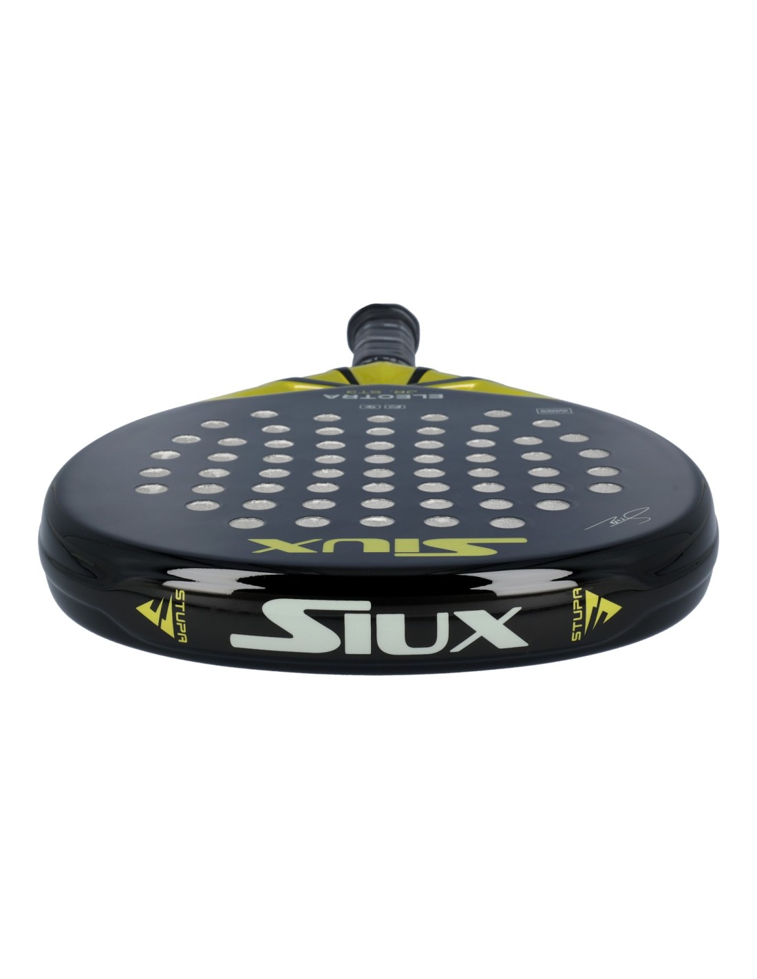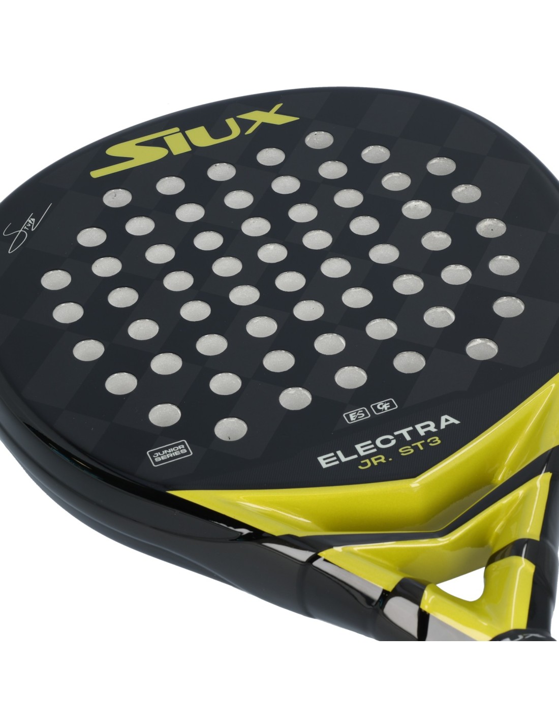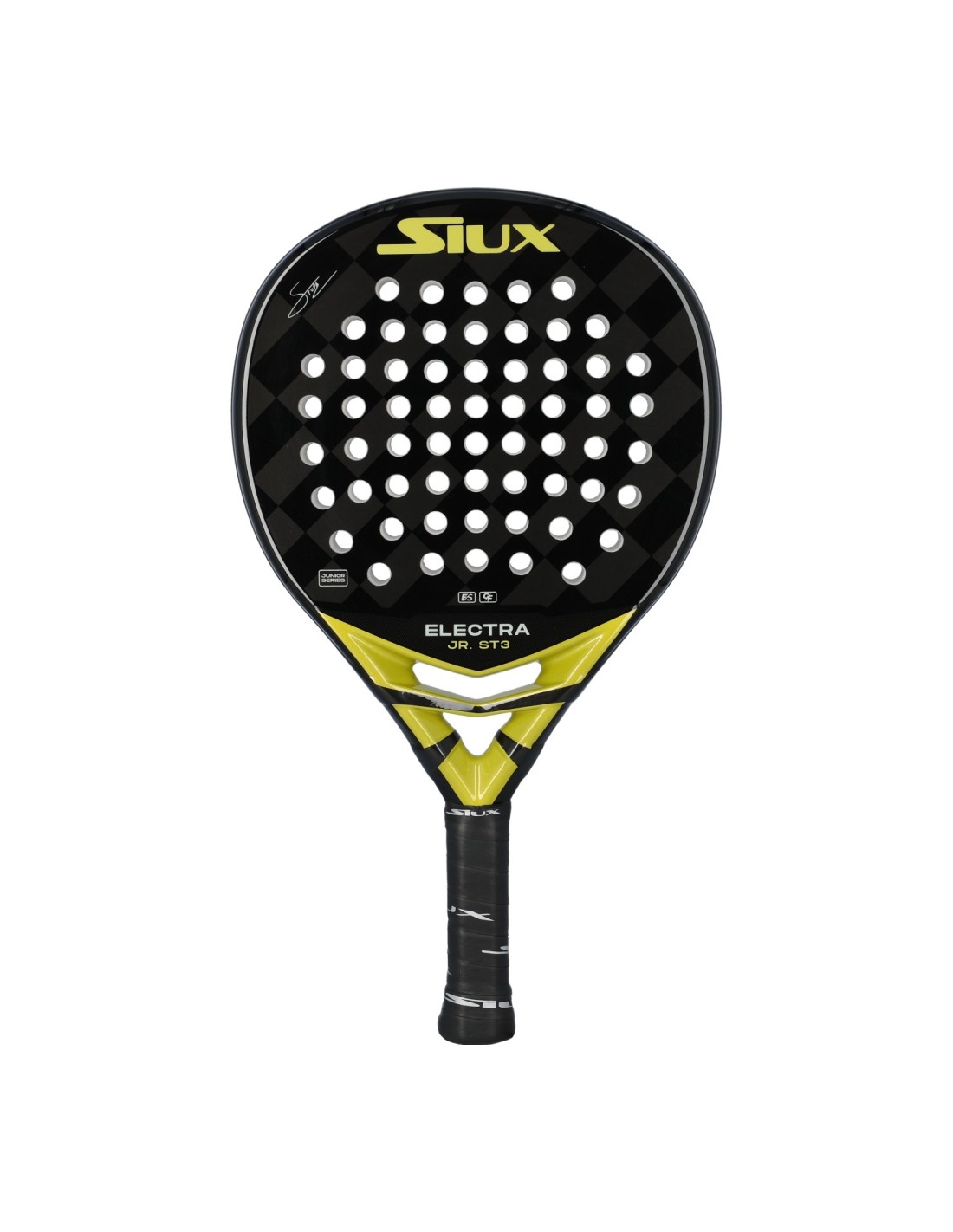 El diseño en negro con detalles dorados y un acabado brillante le da un toque elegante y atractivo. En definitiva, la Siux Electra Jr St3 es la elección perfecta para los jóvenes apasionados del pádel que buscan una Pala que se ajuste a sus necesidades. Con su equilibrio entre Potencia y Control, durabilidad y diseño atractivo, esta Pala les ayudará a mejorar su juego y a destacar en la cancha.