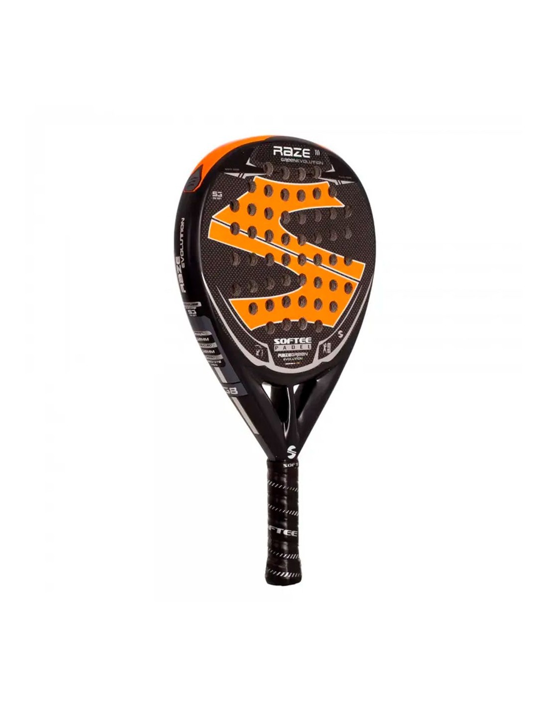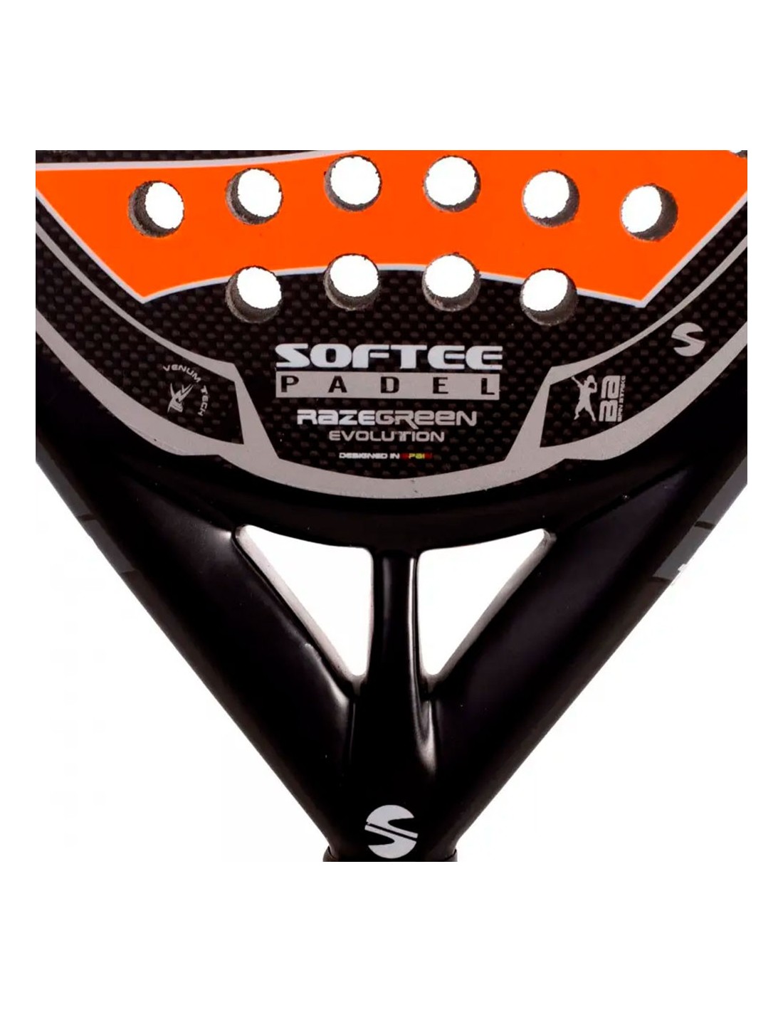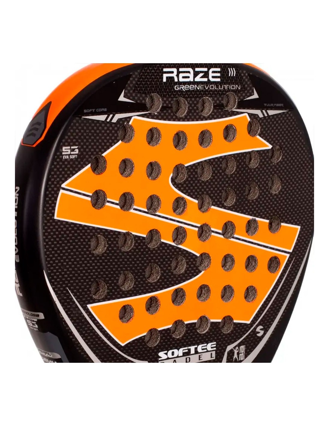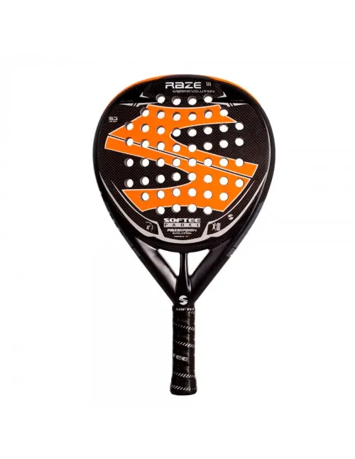 En cuanto a sus materiales y tecnologías, la Softee Raze cuenta con un núcleo de espuma EVA Soft S3, una goma blanda que recupera su forma rápidamente y minimiza las vibraciones tras el impacto. Además, incorpora la tecnología Venum Tech, que proporciona un tacto más cómodo al golpear la pelota. Diseñada en España, su perfil de 38mm amplía el punto dulce y mejora tanto la Potencia como el Control, ofreciendo una estabilidad superior en cada golpe. Su construcción en fibra de carbono aumenta la rigidez, proporciona un tacto más cómodo y estable, y mejora la resistencia y durabilidad.