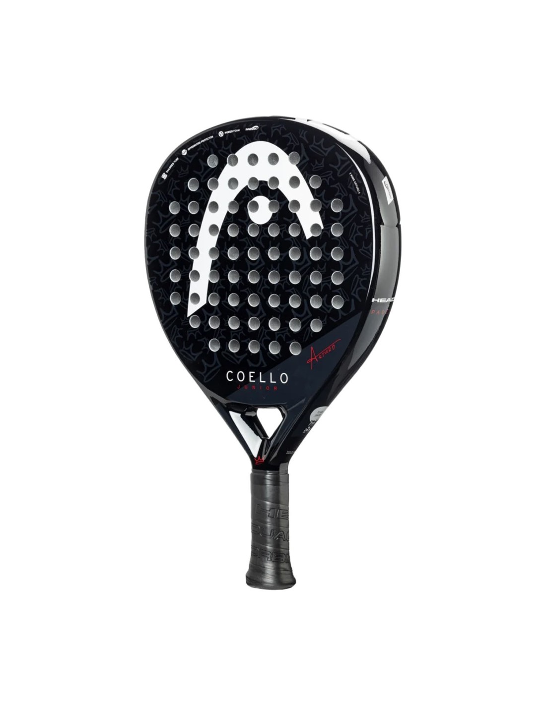 Si sueñas con jugar como el número uno del mundo, Arturo Coello, la Pala Head Coello Junior 2025 es tu aliada perfecta. Creada junto a Head, esta Pala no solo ofrece un rendimiento excepcional, sino que también presume de un diseño exclusivo con el logotipo y la firma del ‘Rey Arturo’.