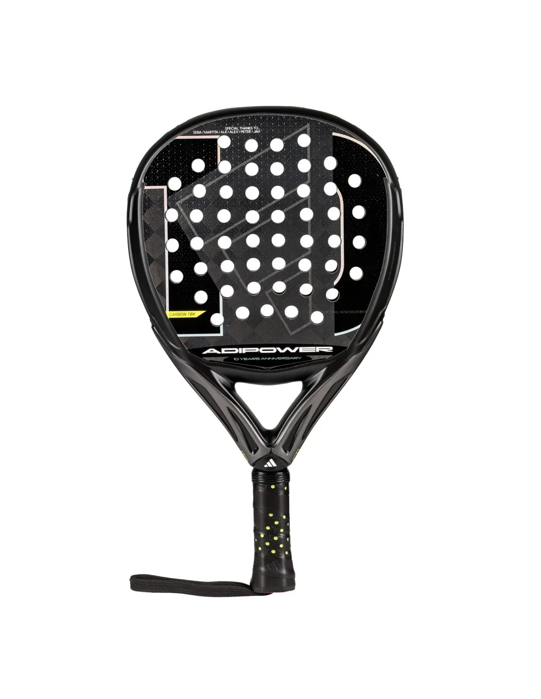 Celebra el 10º aniversario con la Adidas Adipower, una pala diseñada para quienes buscan llevar su juego al siguiente nivel. Con su forma Diamante oversize y balance alto, esta pala está hecha para maximizar la agresividad en tus golpes de ataque. Su peso, que varía entre 355 y 365 gramos, ofrece una mezcla ideal de estabilidad y manejabilidad. La superficie de carbono 18k junto con la goma EVA High Memory aseguran una respuesta explosiva y una salida de bola excepcional, incluso en los golpes más desafiantes. Con un diseño que celebra una década de innovación, esta Pala es perfecta para quienes buscan dominar el juego ofensivo con Potencia, Control y precisión.