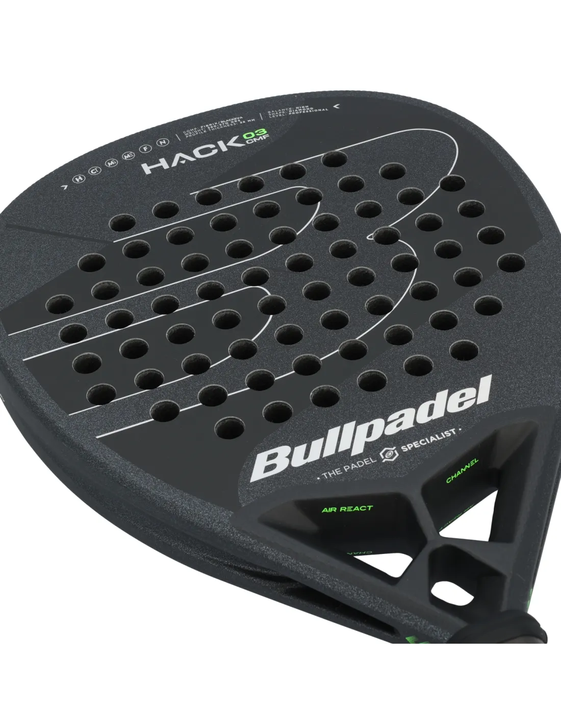 La nueva Bullpadel Hack 03 CMF Xseries es una Pala única, creada para quienes quieren llevar su juego ofensivo al siguiente nivel sin perder ni un ápice de estabilidad y Control. Con su forma de Diamante y un balance ligeramente elevado, es la compañera ideal para los jugadores que buscan ese extra de Potencia en sus remates y bandejas. Su peso está perfectamente equilibrado, ofreciendo solidez sin comprometer la movilidad, adaptándose tanto a golpes rápidos como a transiciones defensivas.