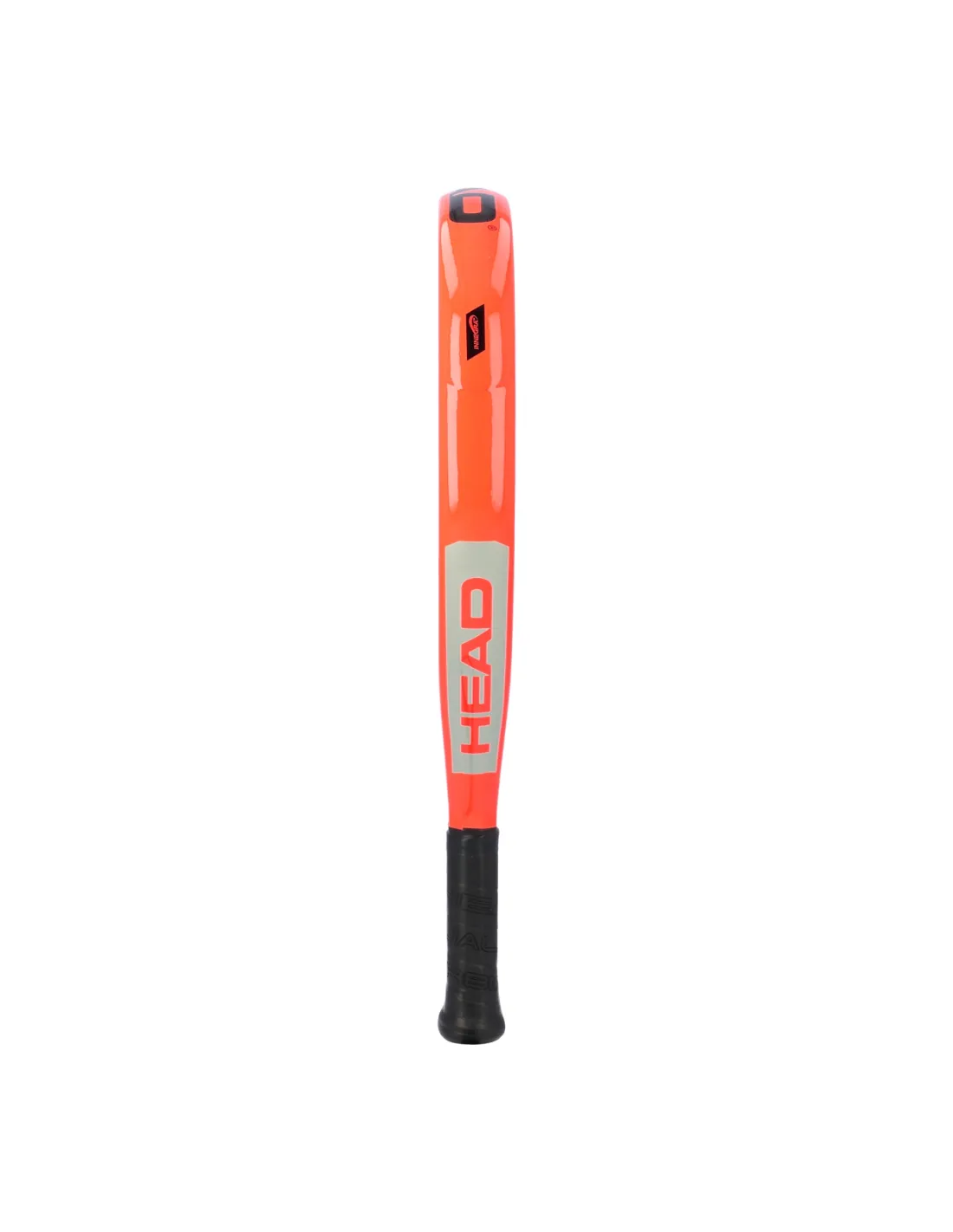 La Pala presenta un diseño vibrante en tonos naranja y gris, con detalles del logo de la marca en rojo. Su formato de lágrima permite movimientos más fluidos.