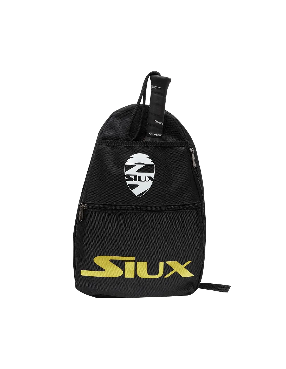 El Paletero Siux Fusion es perfecto para quienes prefieren llevar solo lo esencial a la cancha. Con un elegante diseño en negro y detalles dorados que destacan el logo de la marca, este paletero es tanto funcional como estiloso. Está hecho de poliéster de alta calidad, lo que garantiza su resistencia incluso con un uso frecuente.