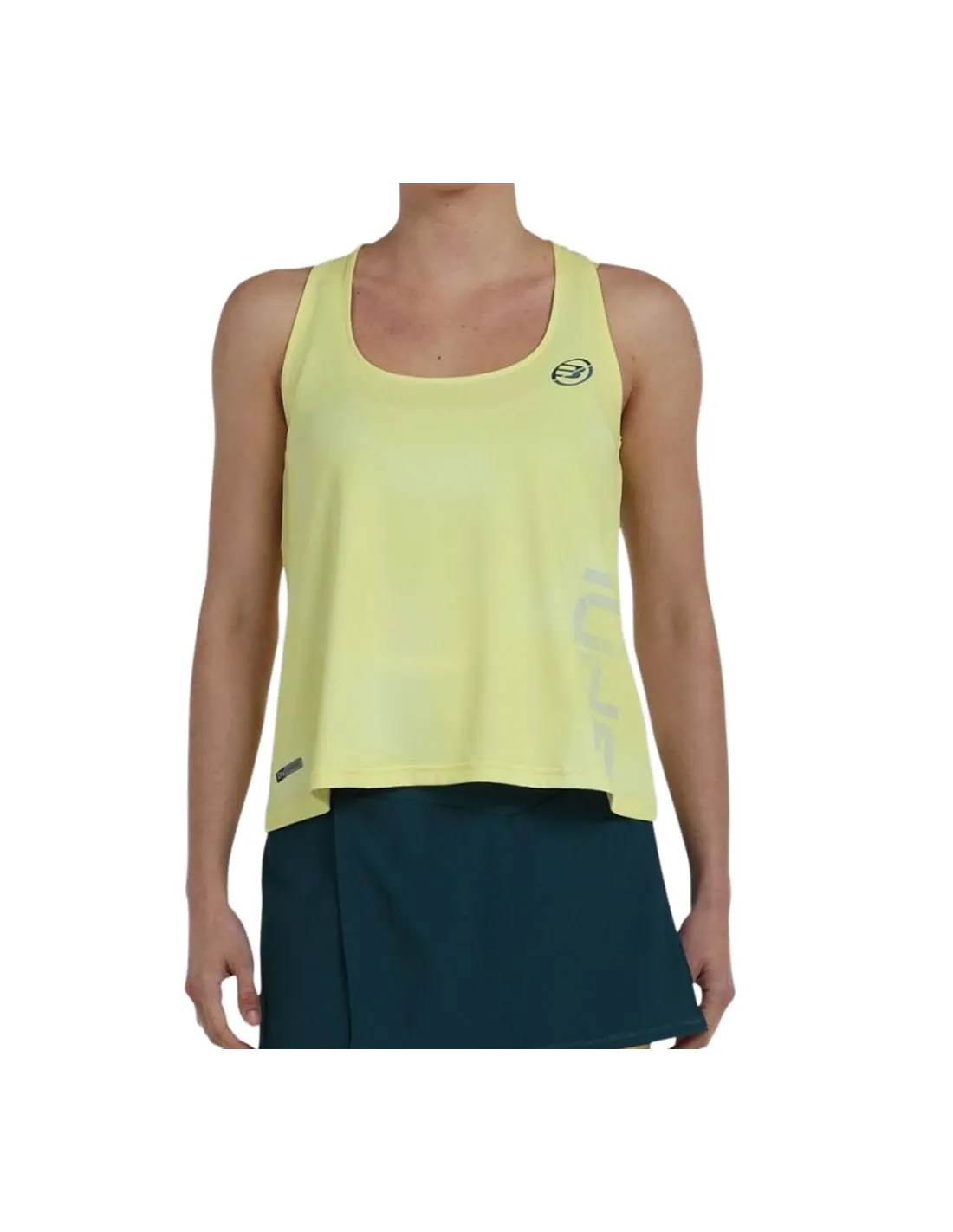 - Diseño tipo tank top con tirantes cruzados y logo en el frente.