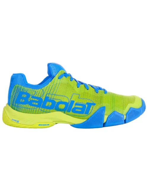 Las Babolat Jet Premura en vibrantes tonos azul y amarillo son las Zapatillas ideales para pádel o tenis, ¡las mismas que elige Juan Lebrón! Están pensadas para quienes se mueven con agilidad en la pista. Además, cuentan con una suela de caucho Michelin para un agarre excepcional.