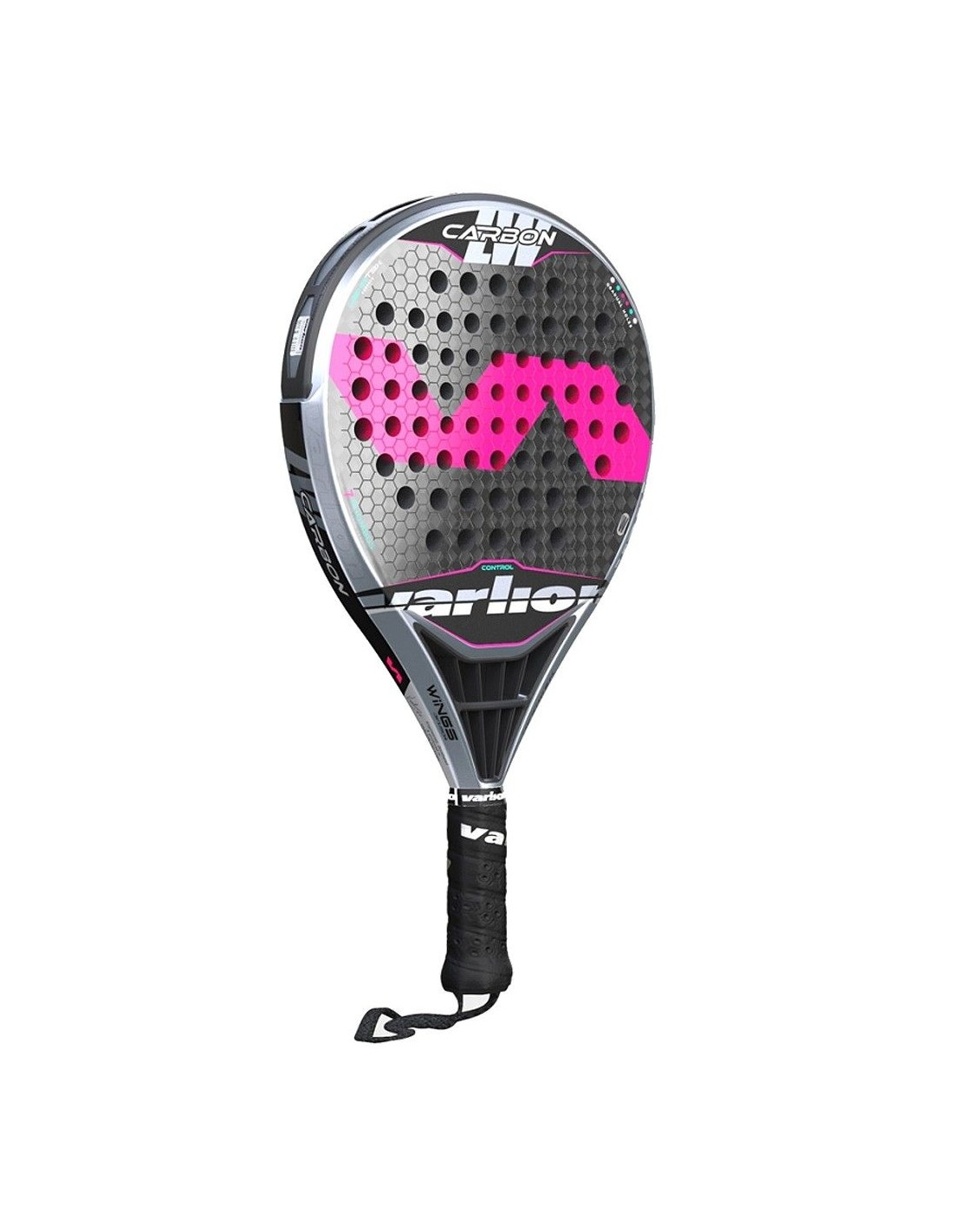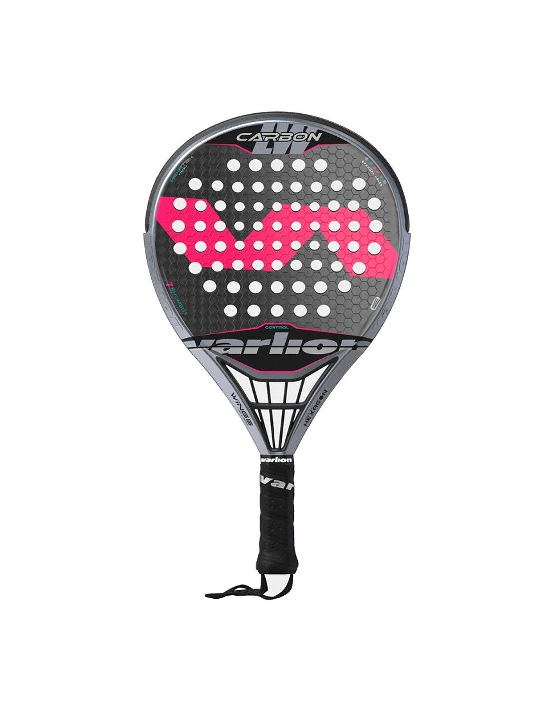 L'intera testa della racchetta è di colore grigio. Presenta sfumature di diversi toni sulle facce. Al centro di queste appaiono le greche tipiche di Varlion in grande formato e con tonalità rosa fluo. Nella parte superiore di ogni piatto appare la scritta «Carbon» in tipografia outline metallizzata, e in basso il logo «Varlion» ritagliato, con lo stesso cromatismo.