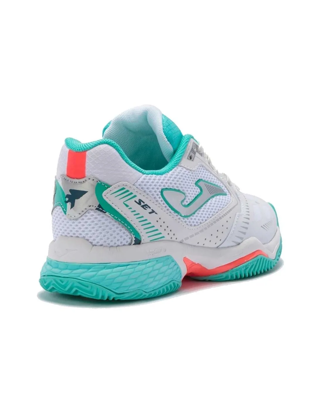 Joma Scarpe da padel da donna, Set 21 Clay White Green Donna È la scarpa ideale per i giocatori di peso medio che hanno bisogno di molta stabilità nel battistrada.