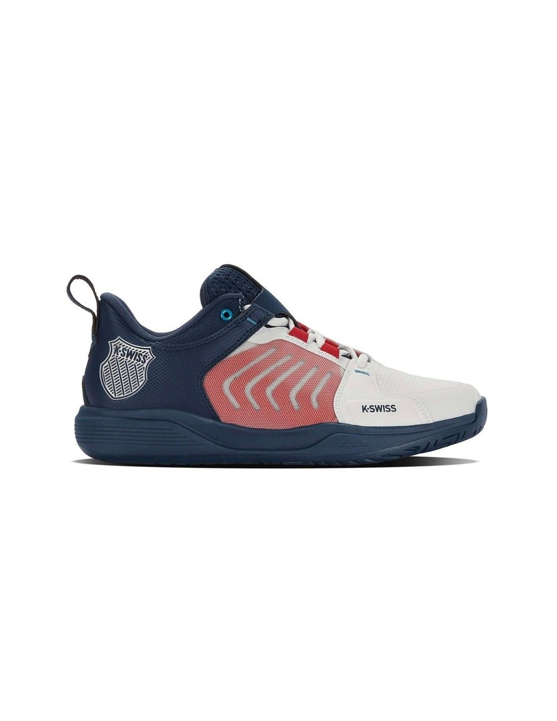 Le Ultrashot Team in Bianco Blu marino di Kswiss ti offrono una stabilità incredibile ad ogni passo che fai. Senti la differenza nel tuo gioco con questo lusso di scarpe!