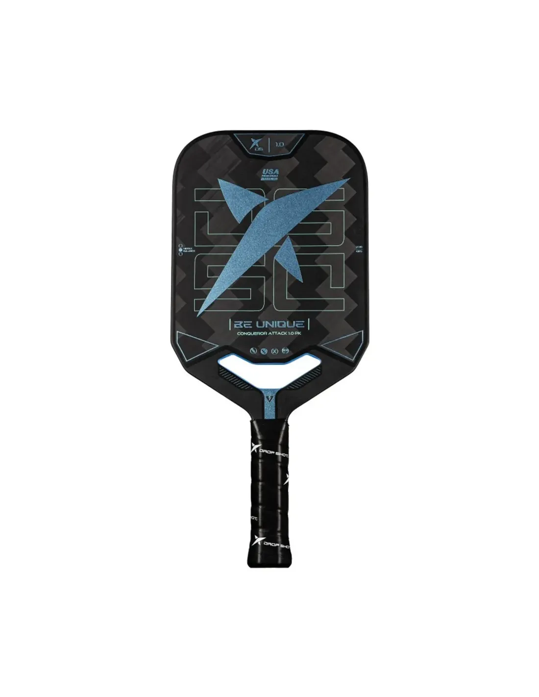 A Raquete Pickleball Drop Shot Conqueror Attack 1.0 é ideal para aqueles jogadores que querem levar seu jogo para o próximo nível, combinando uma Potência impressionante com um Control preciso. Fabricada com carbono bidirecional 24k Twill, esta Raquete oferece uma mistura perfeita de flexibilidade, resistência e durabilidade. Seu núcleo de painel de abelha melhora a elasticidade, enquanto o reforço no coração da Raquete proporciona uma estabilidade excepcional, permitindo golpes mais firmes e potentes.