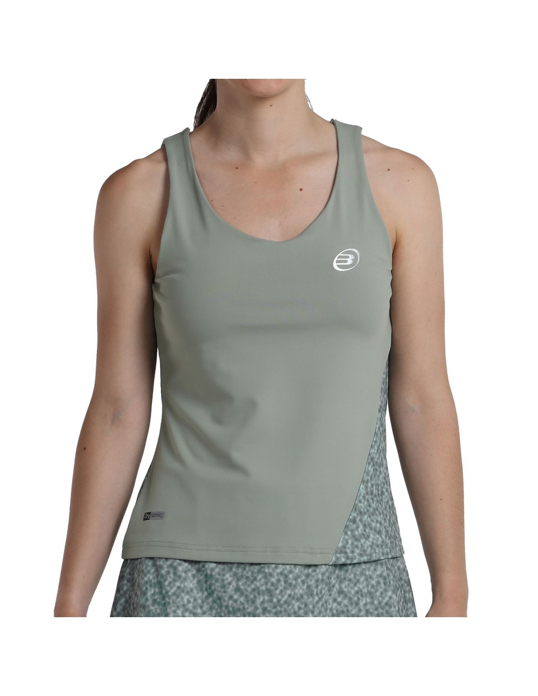 Bullpadel padel A T-shirt Brete foi concebida para as jogadoras que procuram um vestuário de alto desempenho. É fabricada com poliéster elástico e tecnologia Drynamic, um material que melhora a respirabilidade e a ventilação. Foi concebida com alças, sublimações assimétricas e um ajuste fino para maior conforto. Faz parte da coleção pessoal de Alejandra Salazar.