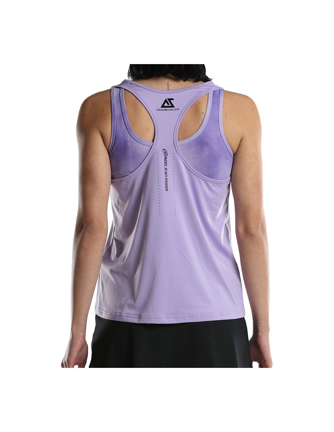 Bullpadel A camisola de alças Erase faz parte da coleção pessoal de Alejandra Salazar. Uma peça de vestuário de alto desempenho com um design elegante e desportivo. Fabricada em poliéster e spandex. Apresenta alças cruzadas nas costas, decote redondo e silhueta larga, para maior conforto dos jogadores. Parte superior interior estampada e perfurações nas costas para facilitar a transpiração. Possui ainda a tecnologia Drynamic, que utiliza microfilamentos para reduzir a humidade e ajudar na respirabilidade. Power Incluído na linha da marca