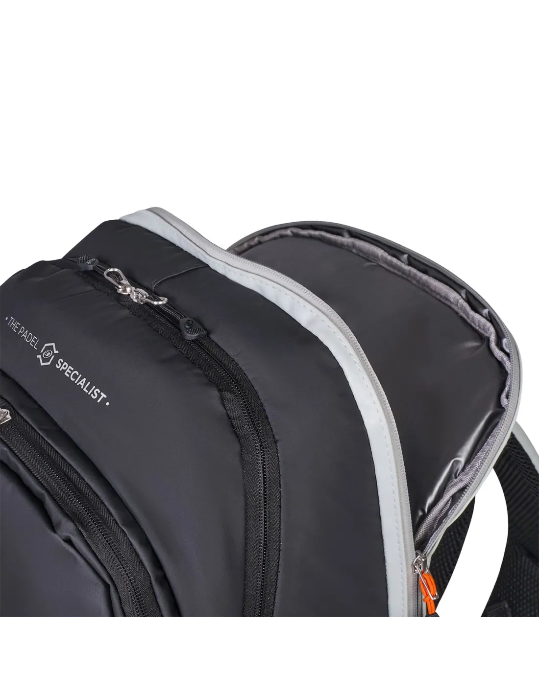 - Um compartimento térmico reforçado que pode abrigar duas raquetes, protegendo-as das variações de temperatura.