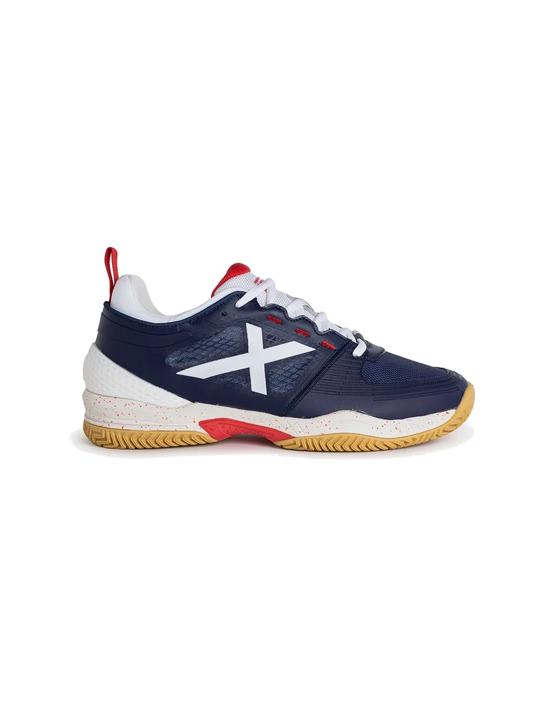As sapatilhas Munich Atomik 23 azul marinho branco são sapatilhas padel com sola de argila e pontos de rotação na sola para um jogo rápido e ágil.