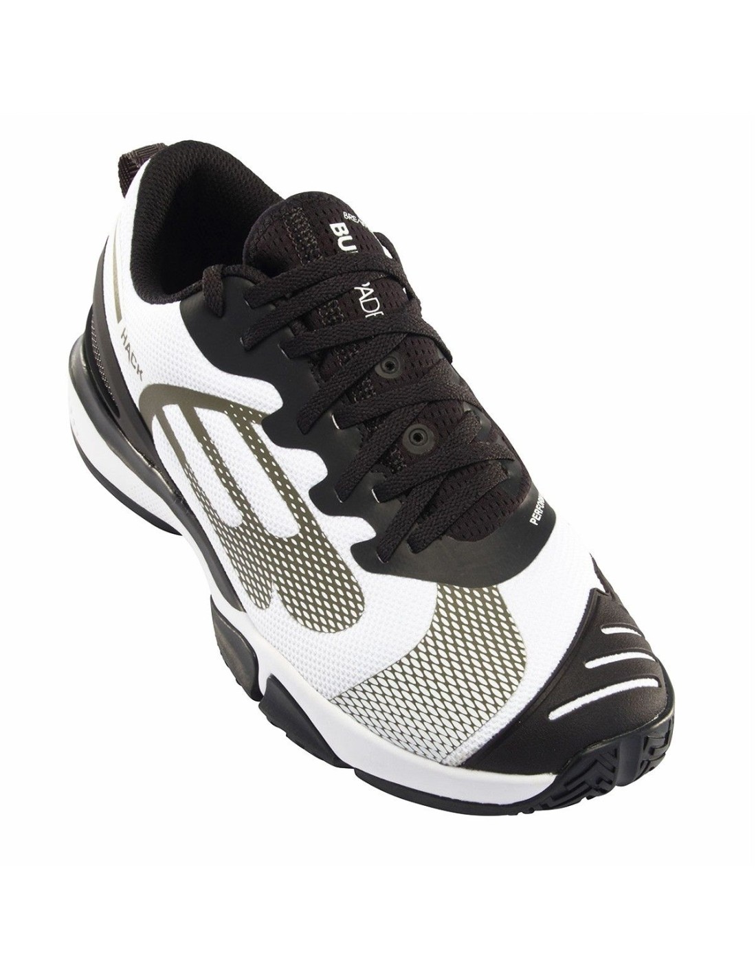 As novas sapatilhas Bullpadel Hack Hybrid Fly 22V da Paquito Navarro com o logotipo do jogador.